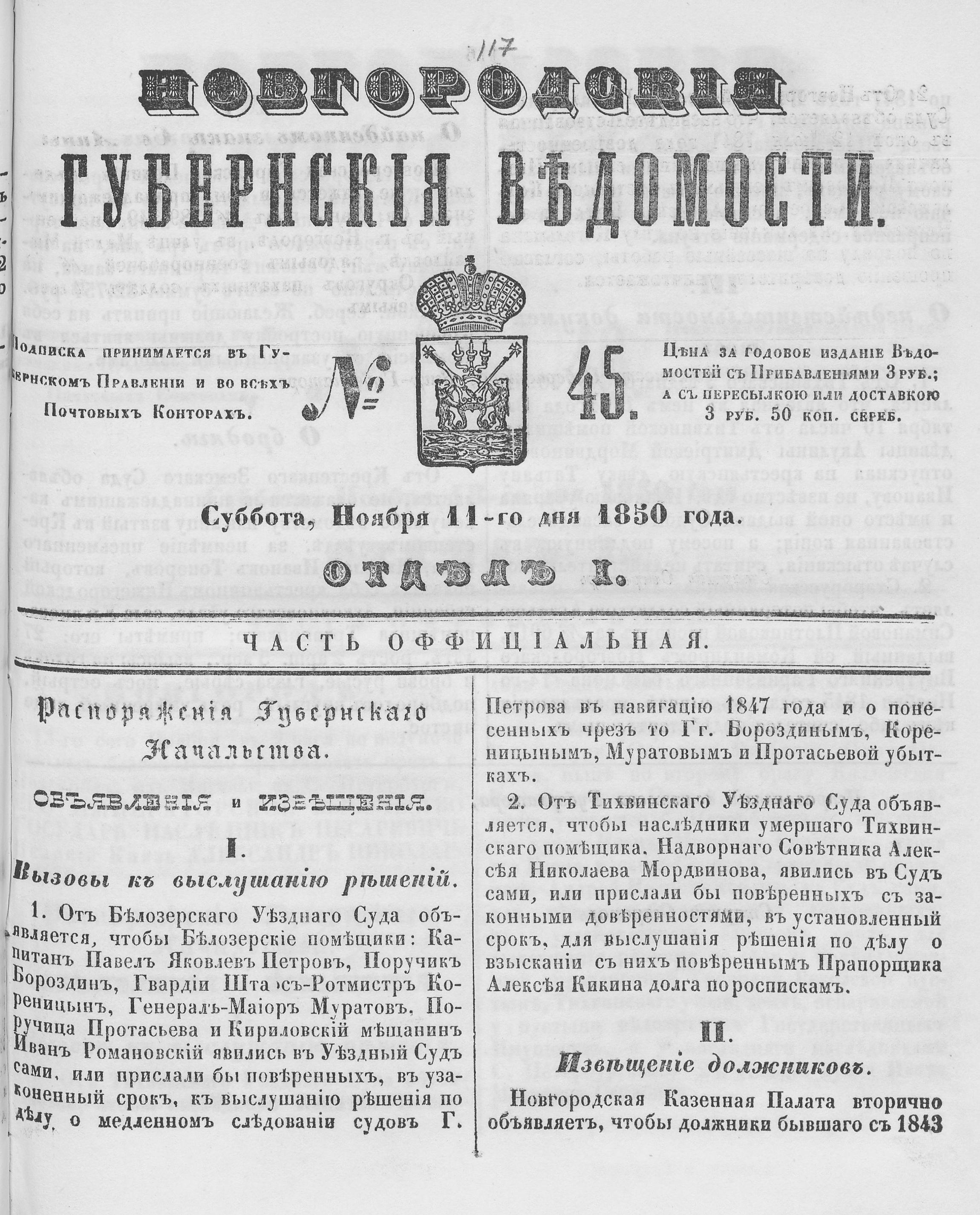 НОВГОРОДСКИЕ ГУБЕРНСКИЕ ВЕДОМОСТИ