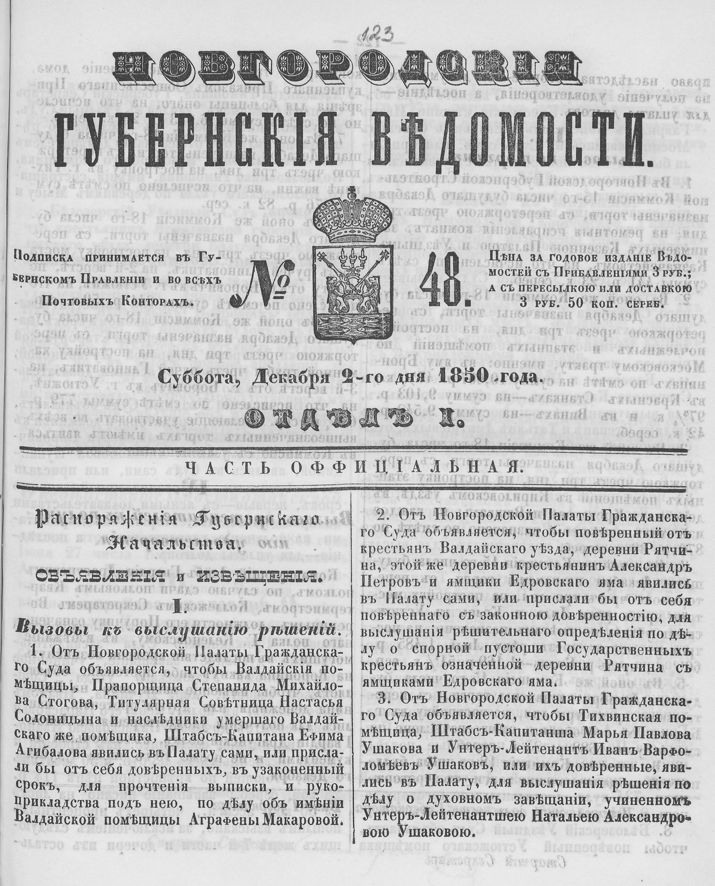 НОВГОРОДСКИЕ ГУБЕРНСКИЕ ВЕДОМОСТИ