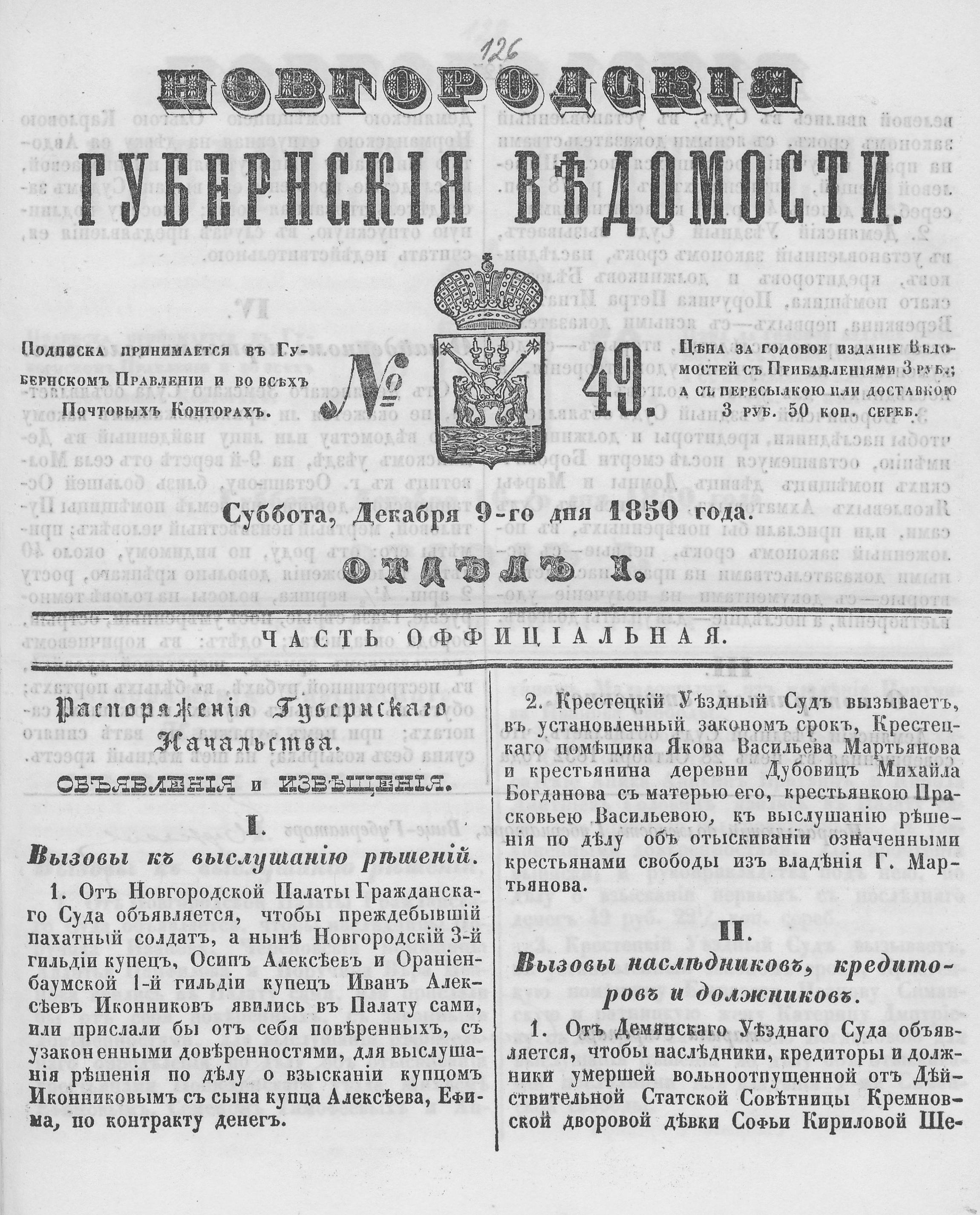 НОВГОРОДСКИЕ ГУБЕРНСКИЕ ВЕДОМОСТИ