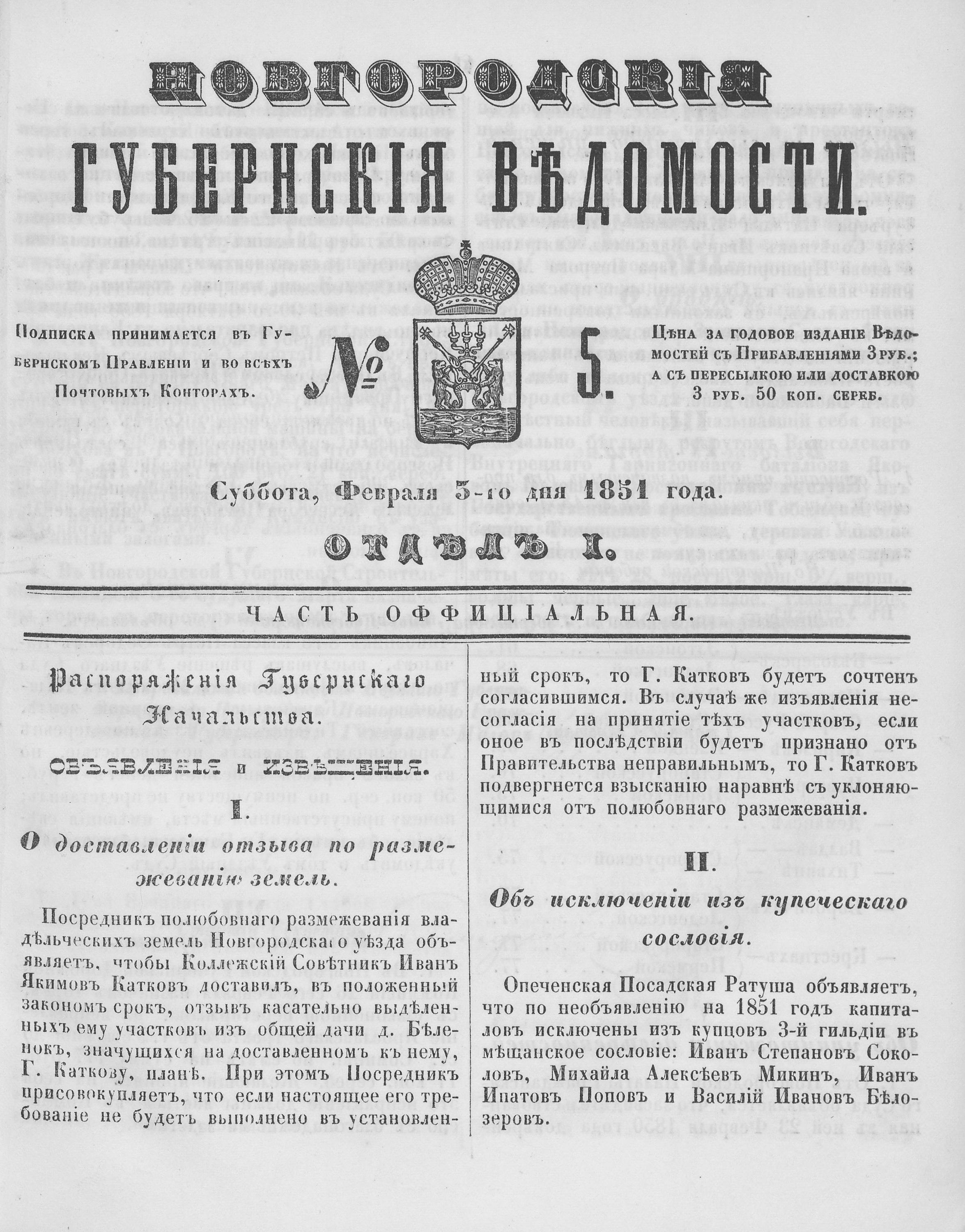 НОВГОРОДСКИЕ ГУБЕРНСКИЕ ВЕДОМОСТИ
