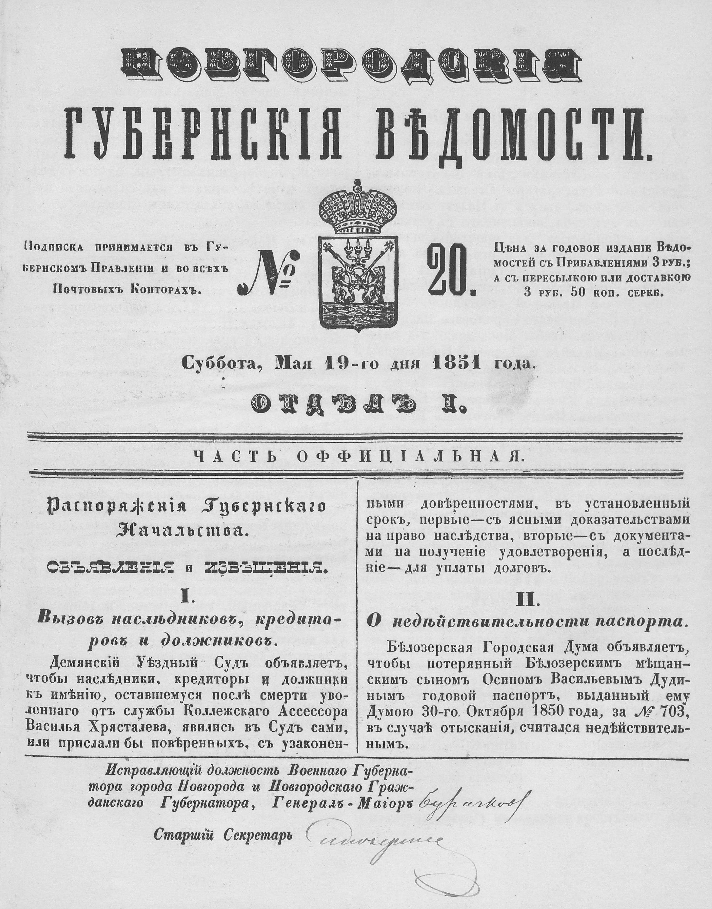НОВГОРОДСКИЕ ГУБЕРНСКИЕ ВЕДОМОСТИ