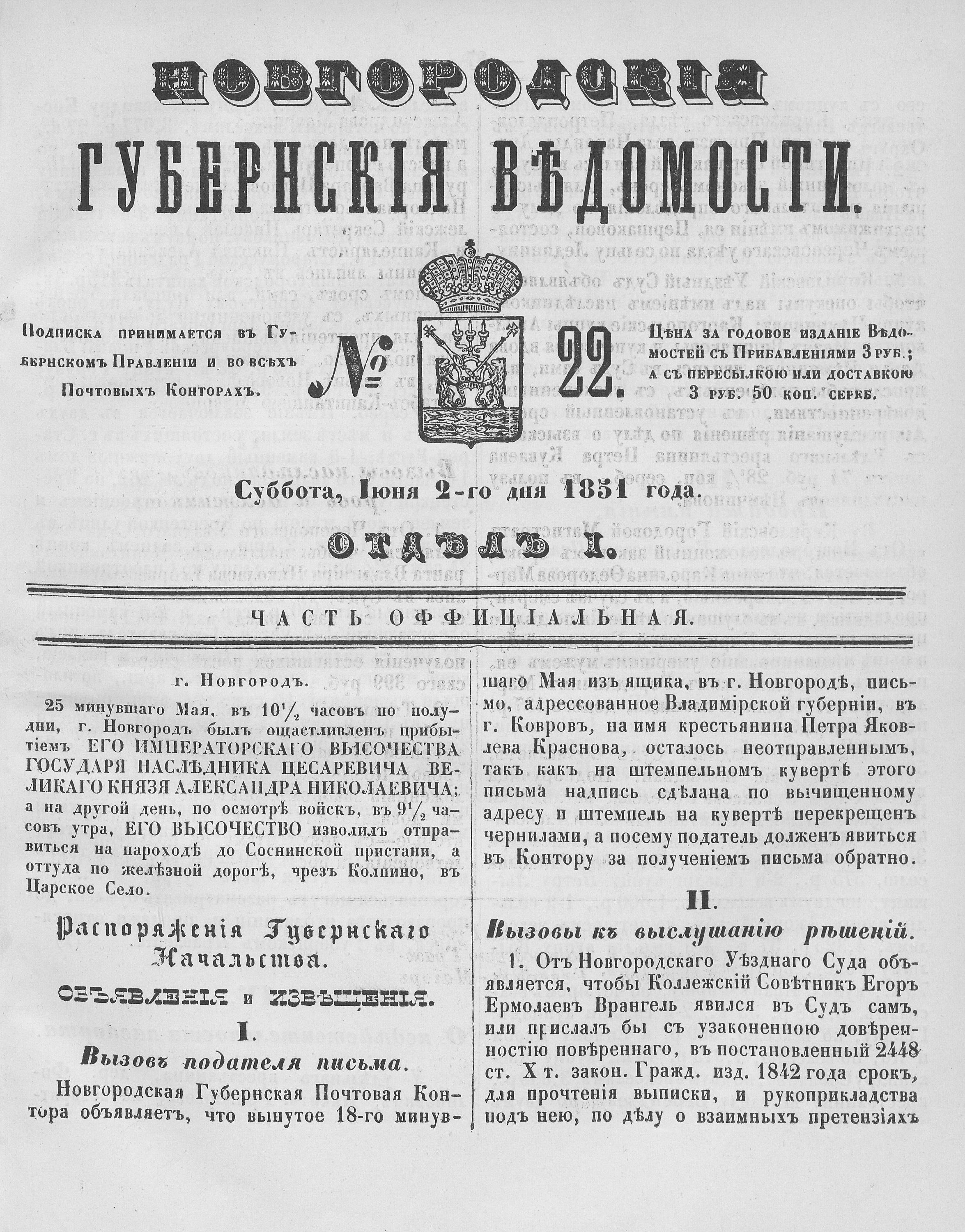 НОВГОРОДСКИЕ ГУБЕРНСКИЕ ВЕДОМОСТИ