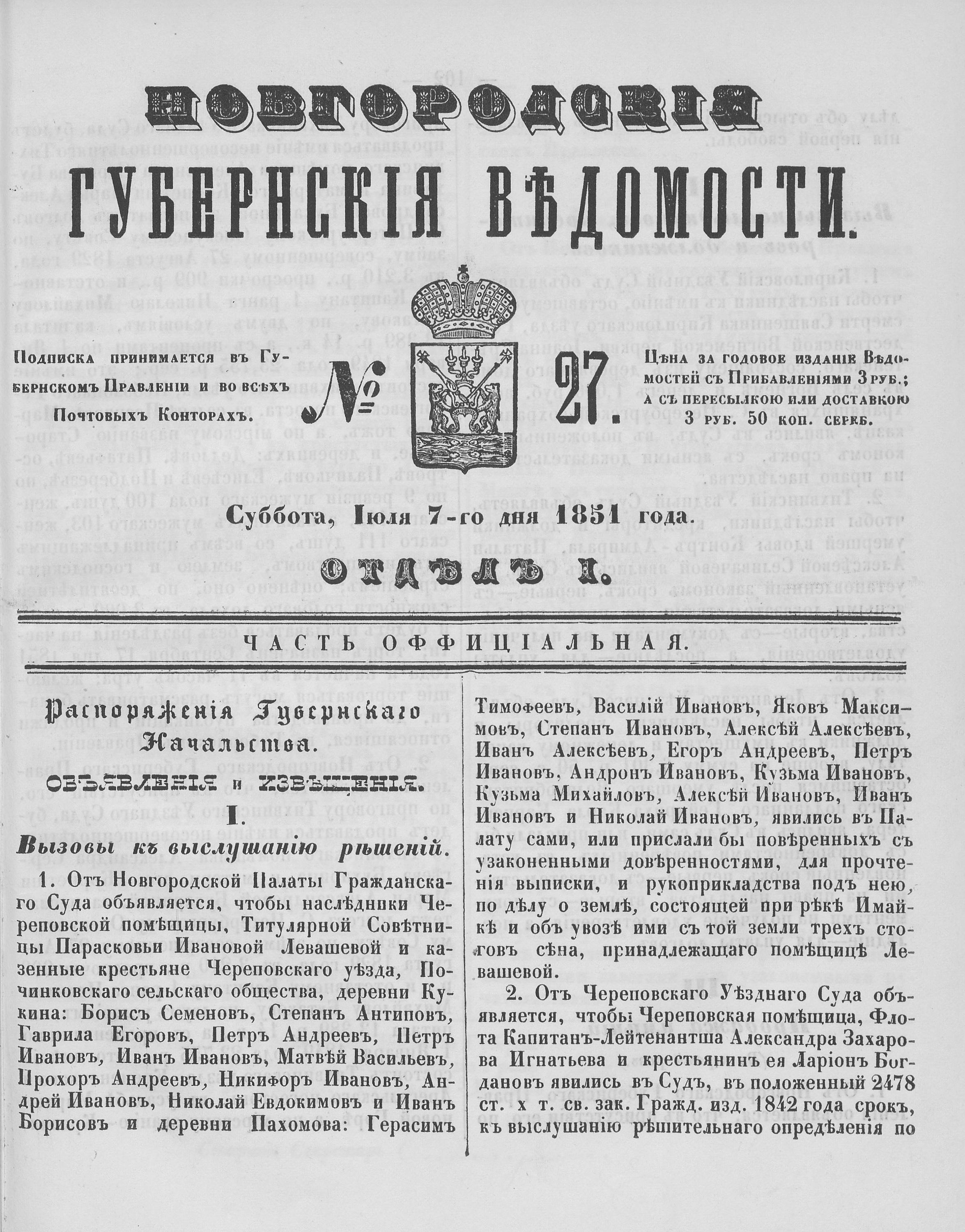 №27, 7 июля 1851 год.