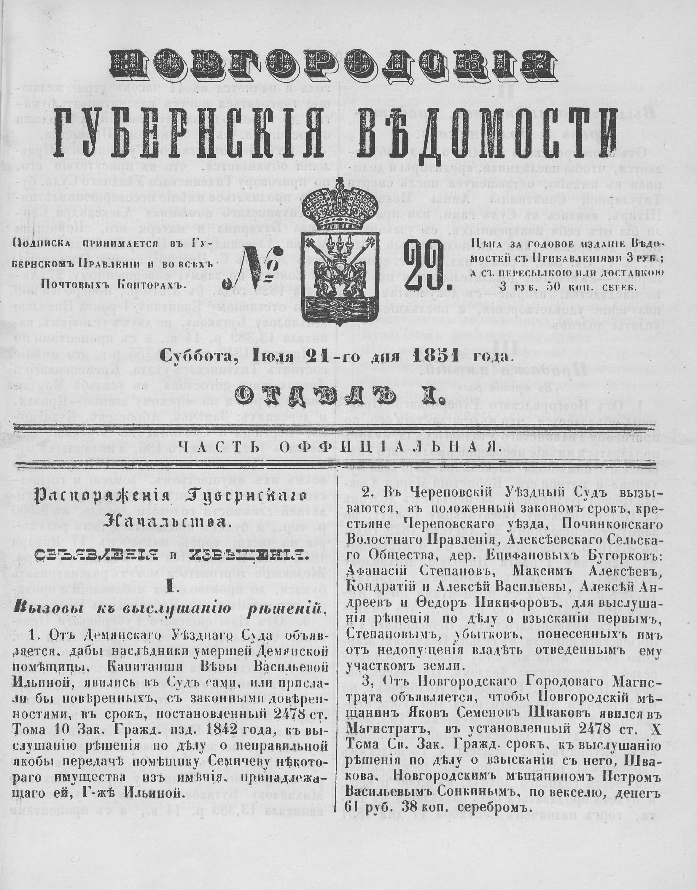 НОВГОРОДСКИЕ ГУБЕРНСКИЕ ВЕДОМОСТИ