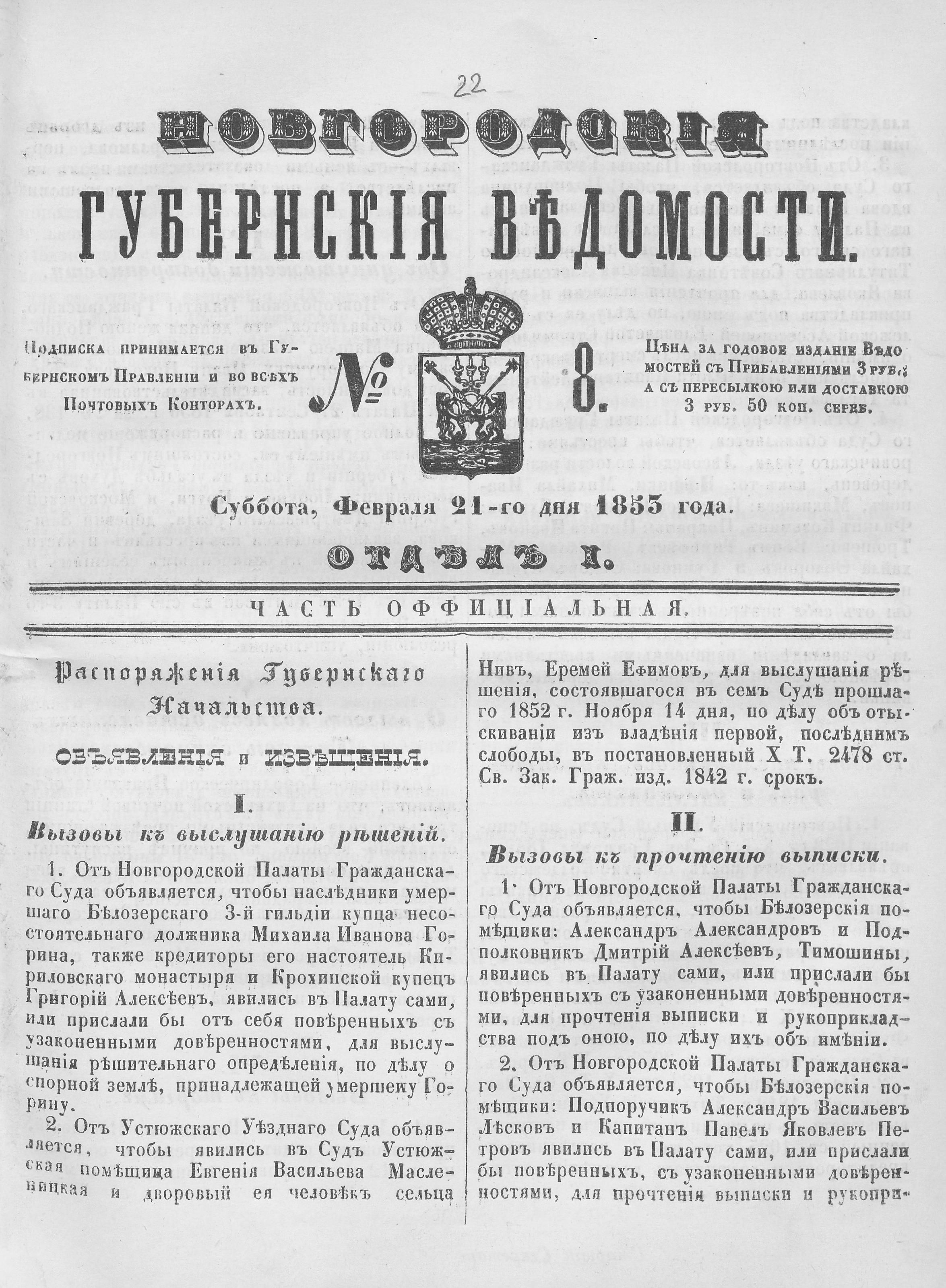 № 8, 21 февраля 1853 года