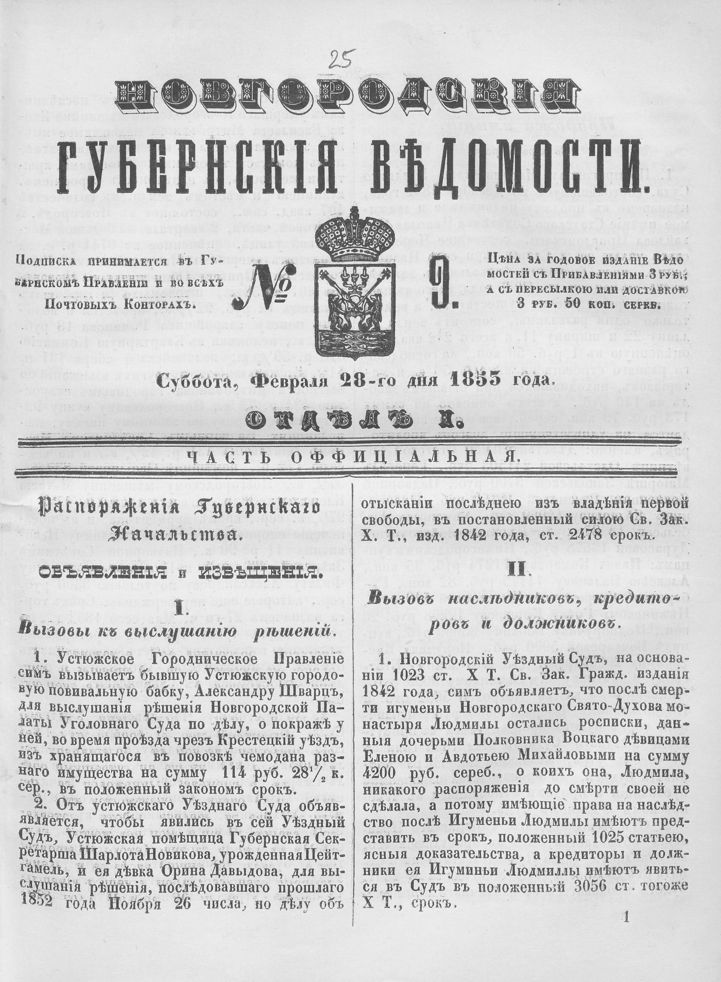 № 9, 28 февраля 1853 года