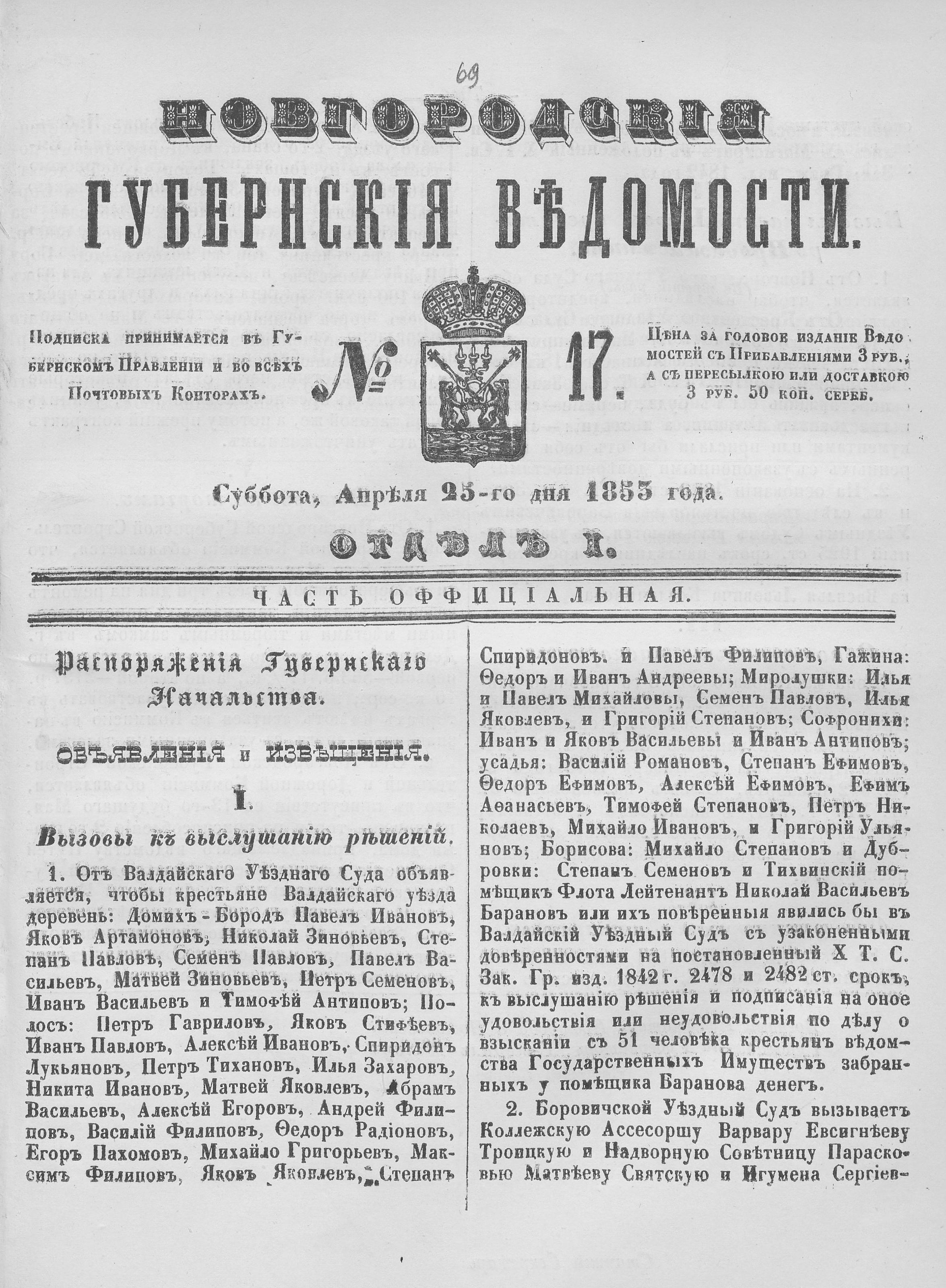 № 17, 25 апреля 1853 года