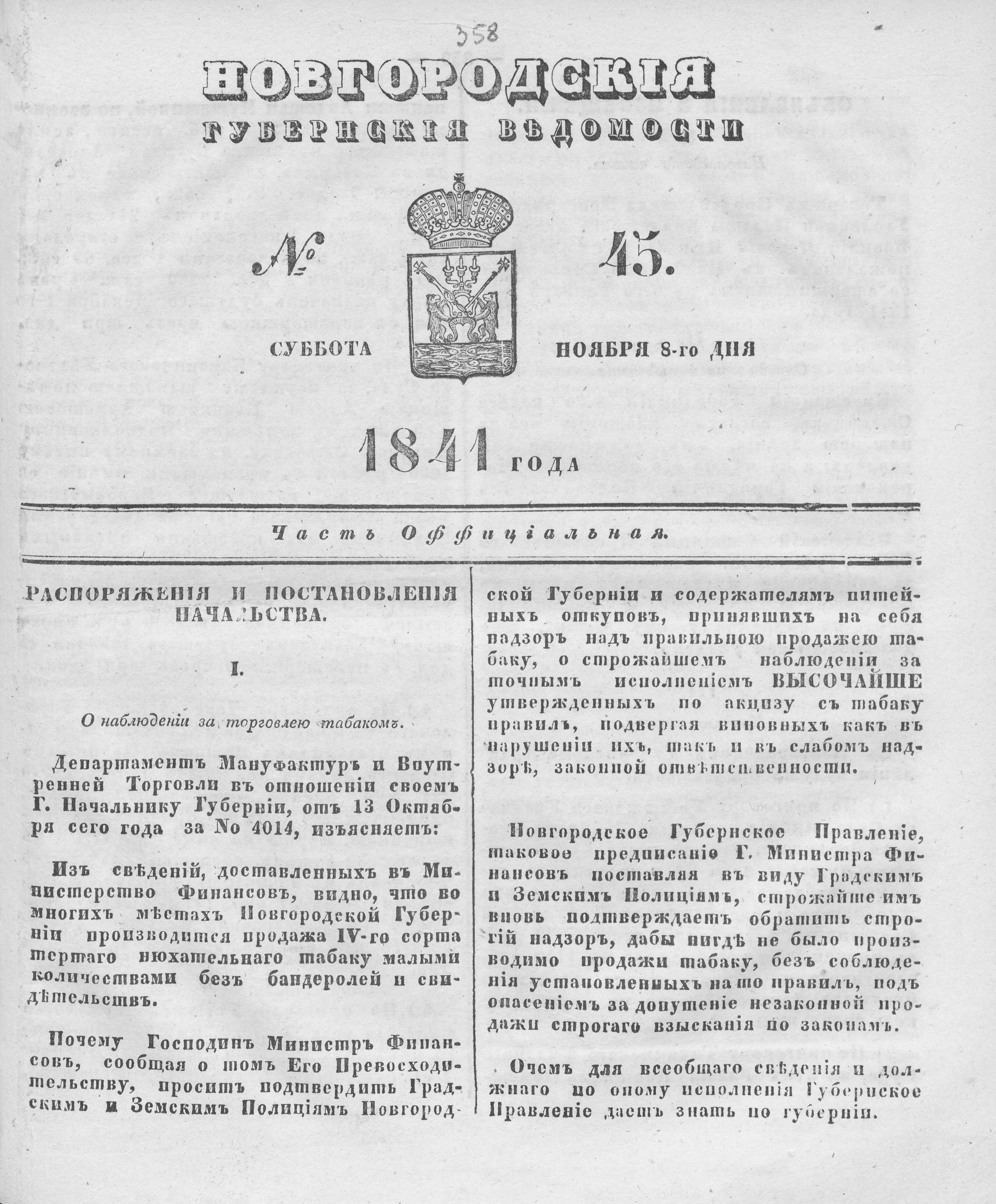 №45. Суббота, 8 ноября,1841 год