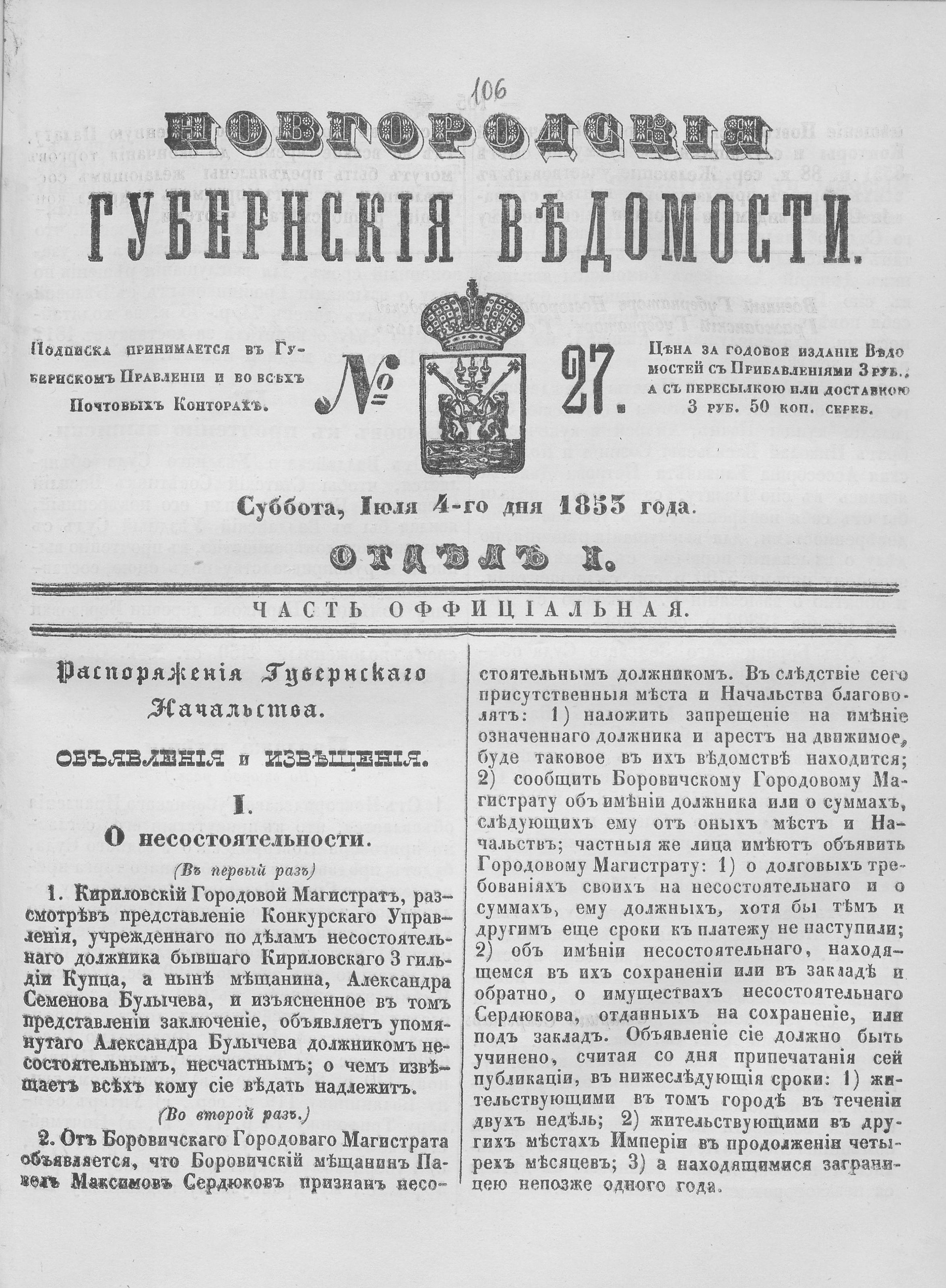 № 27, 4 июля 1853 года