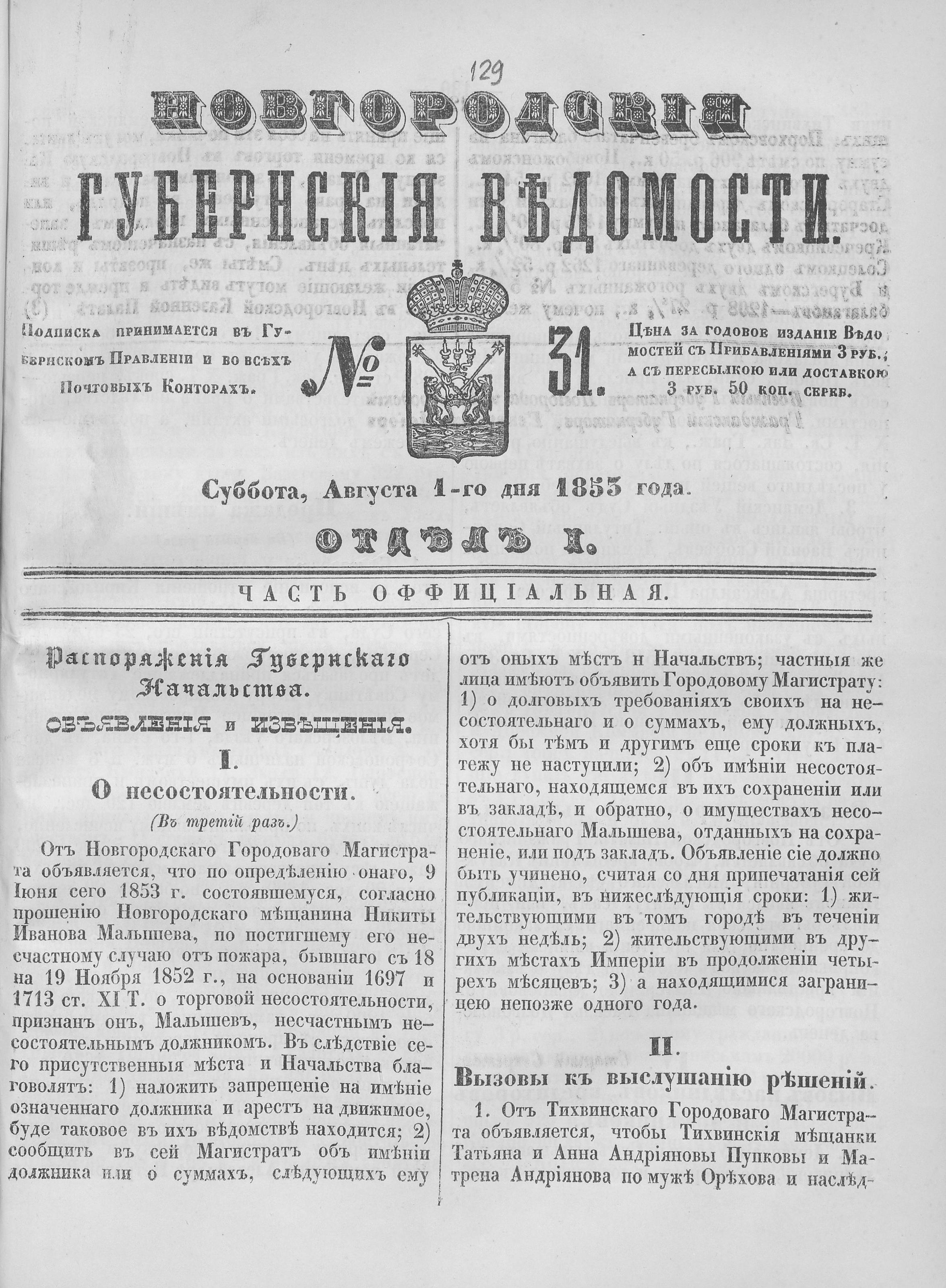 НОВГОРОДСКИЕ ГУБЕРНСКИЕ ВЕДОМОСТИ