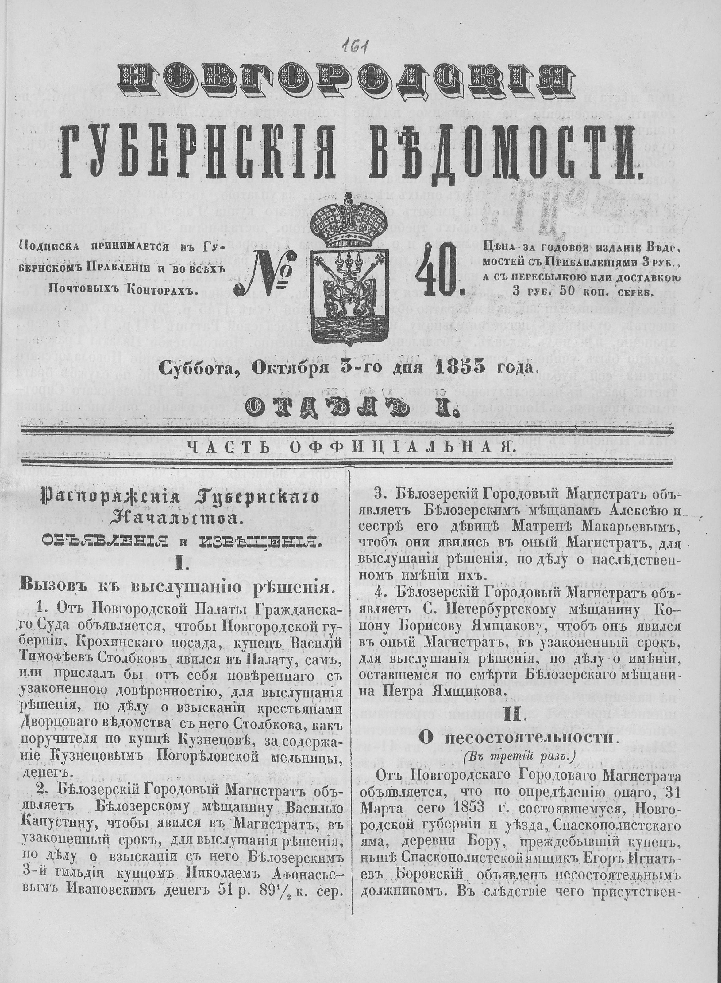 НОВГОРОДСКИЕ ГУБЕРНСКИЕ ВЕДОМОСТИ