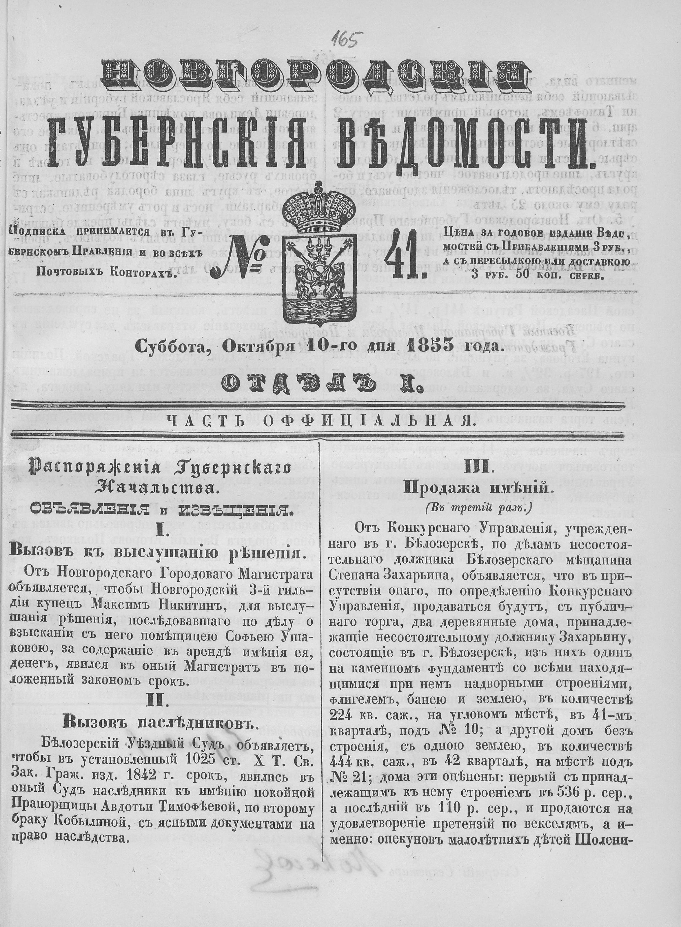 НОВГОРОДСКИЕ ГУБЕРНСКИЕ ВЕДОМОСТИ