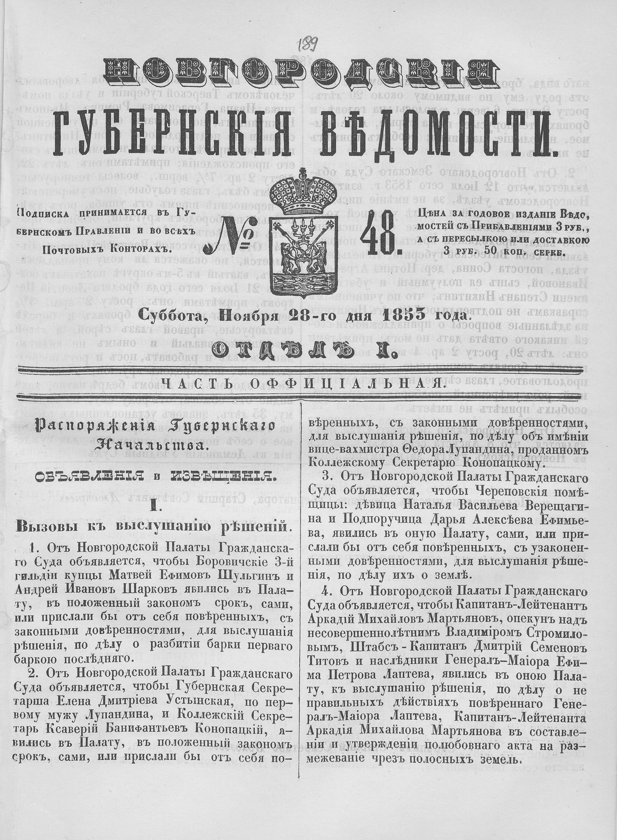 НОВГОРОДСКИЕ ГУБЕРНСКИЕ ВЕДОМОСТИ