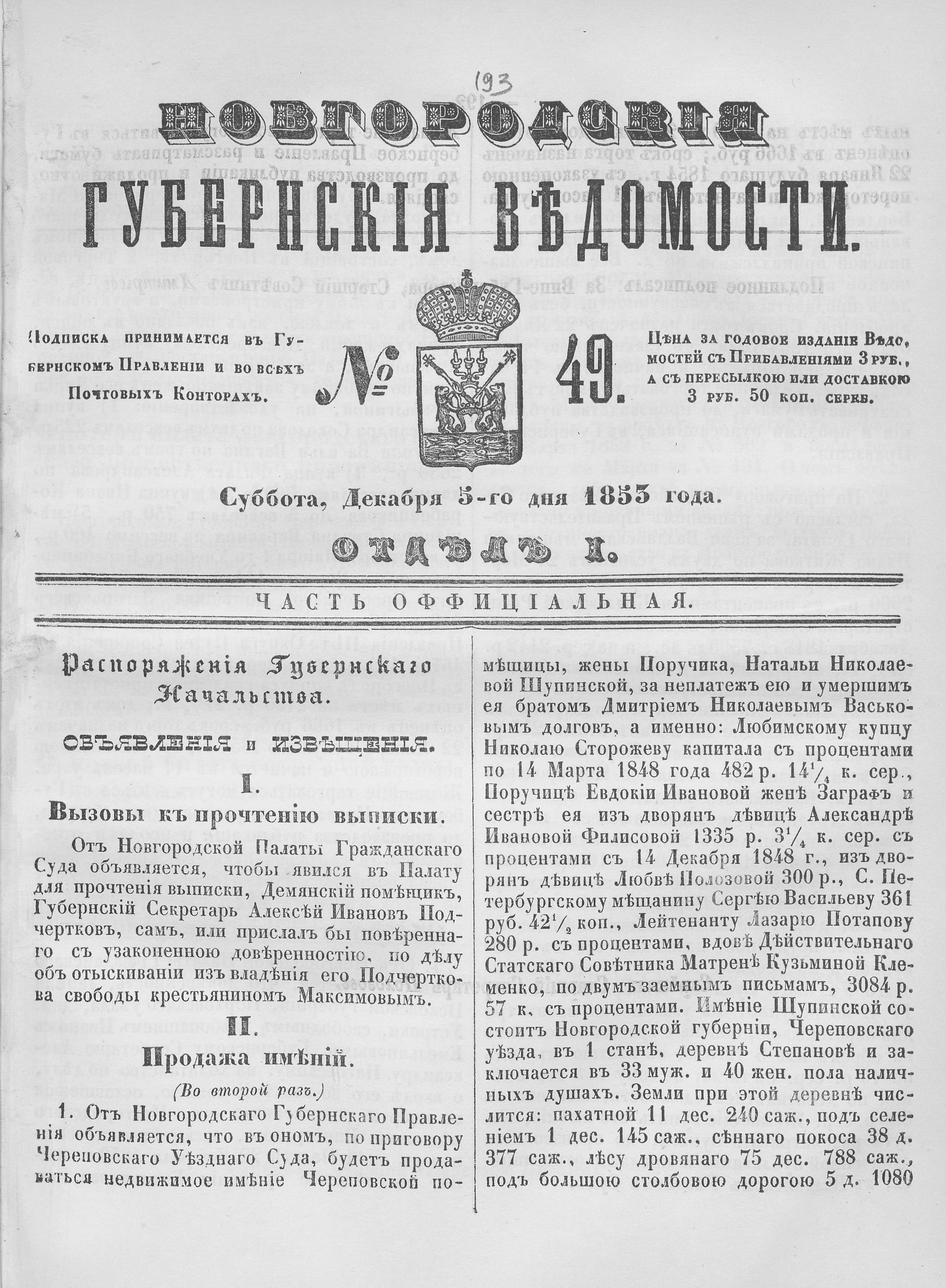 НОВГОРОДСКИЕ ГУБЕРНСКИЕ ВЕДОМОСТИ