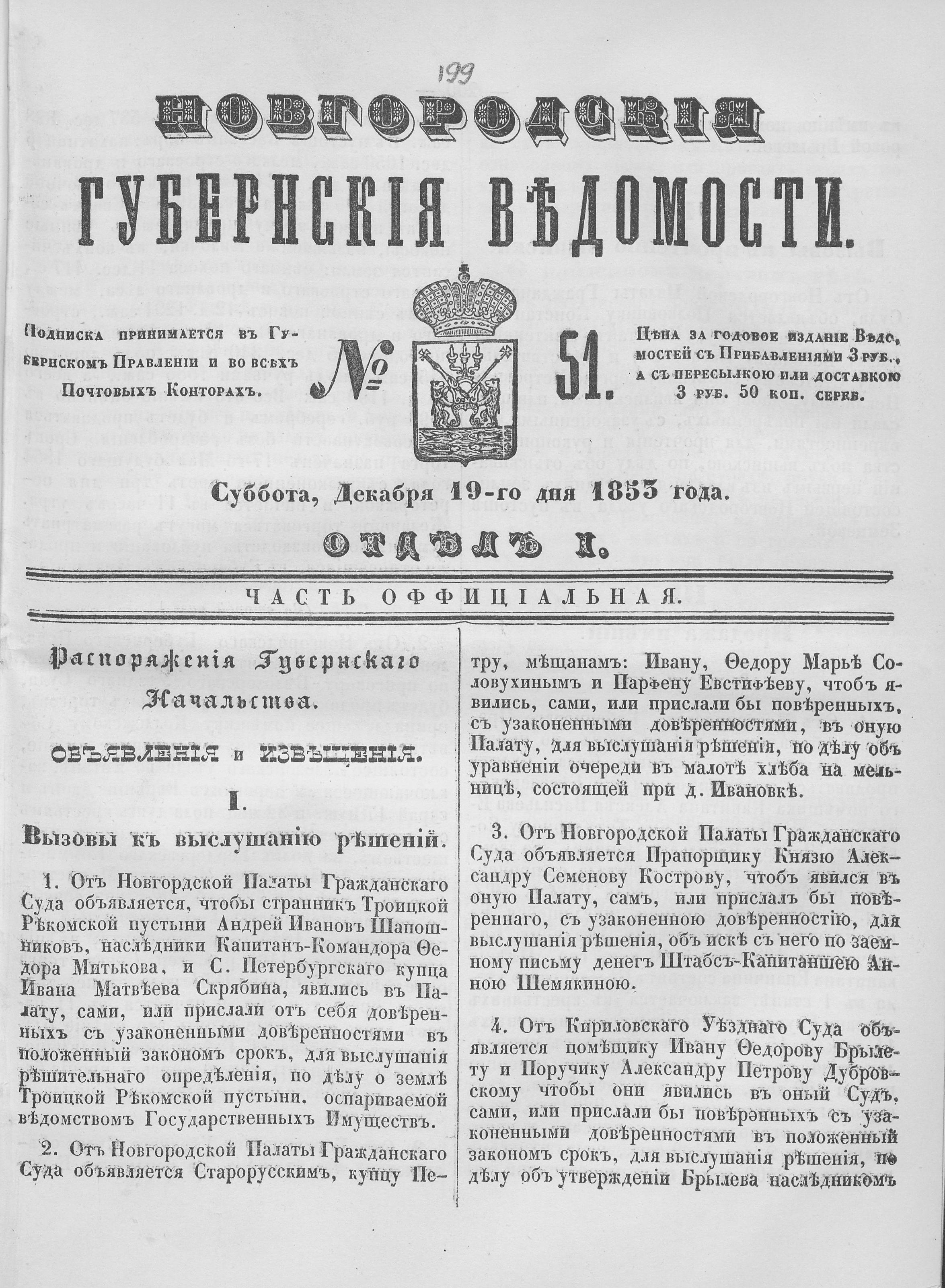 № 51, 19 декабря 1853 года