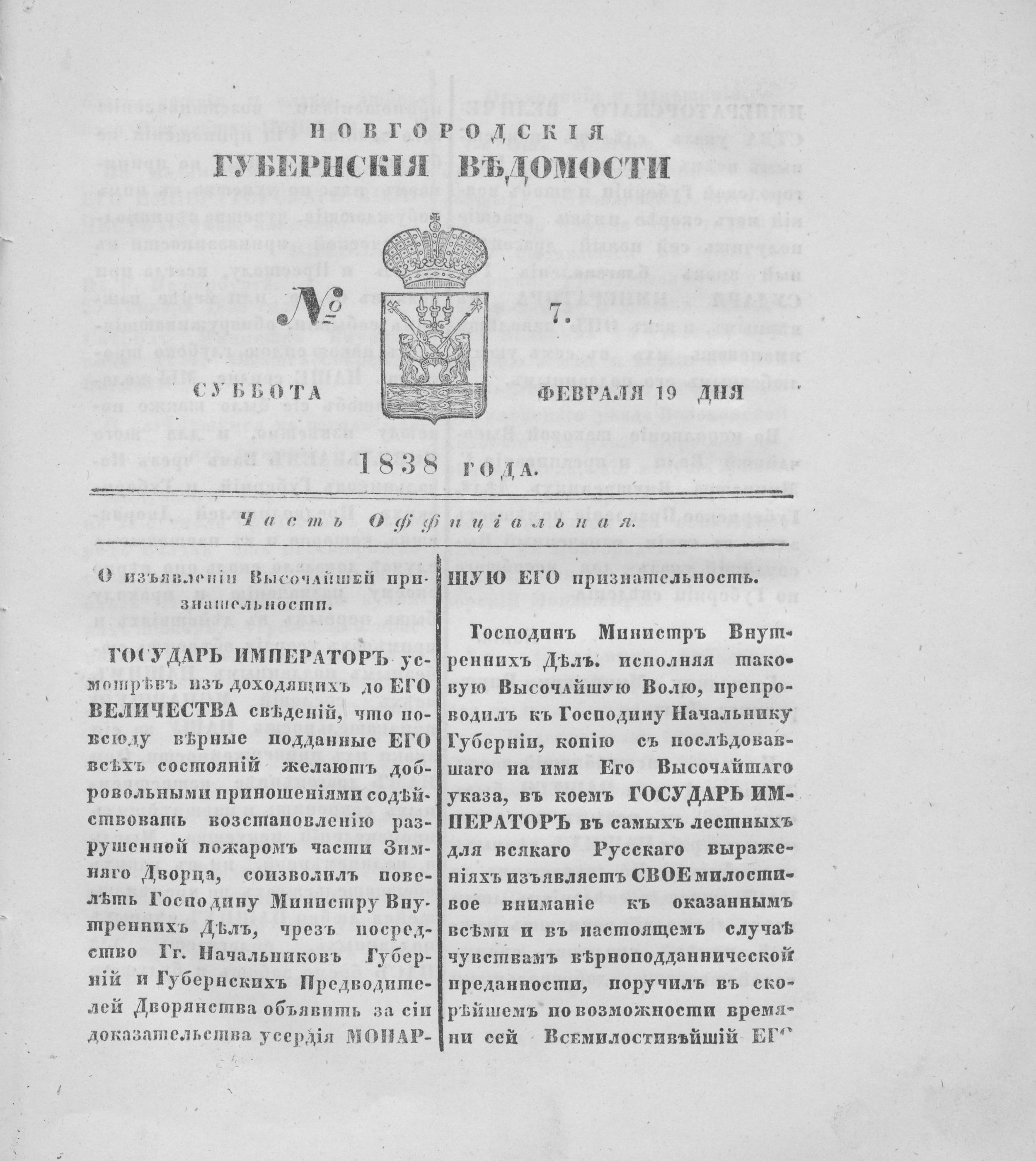 №7. Суббота, 19 февраля,1838 год