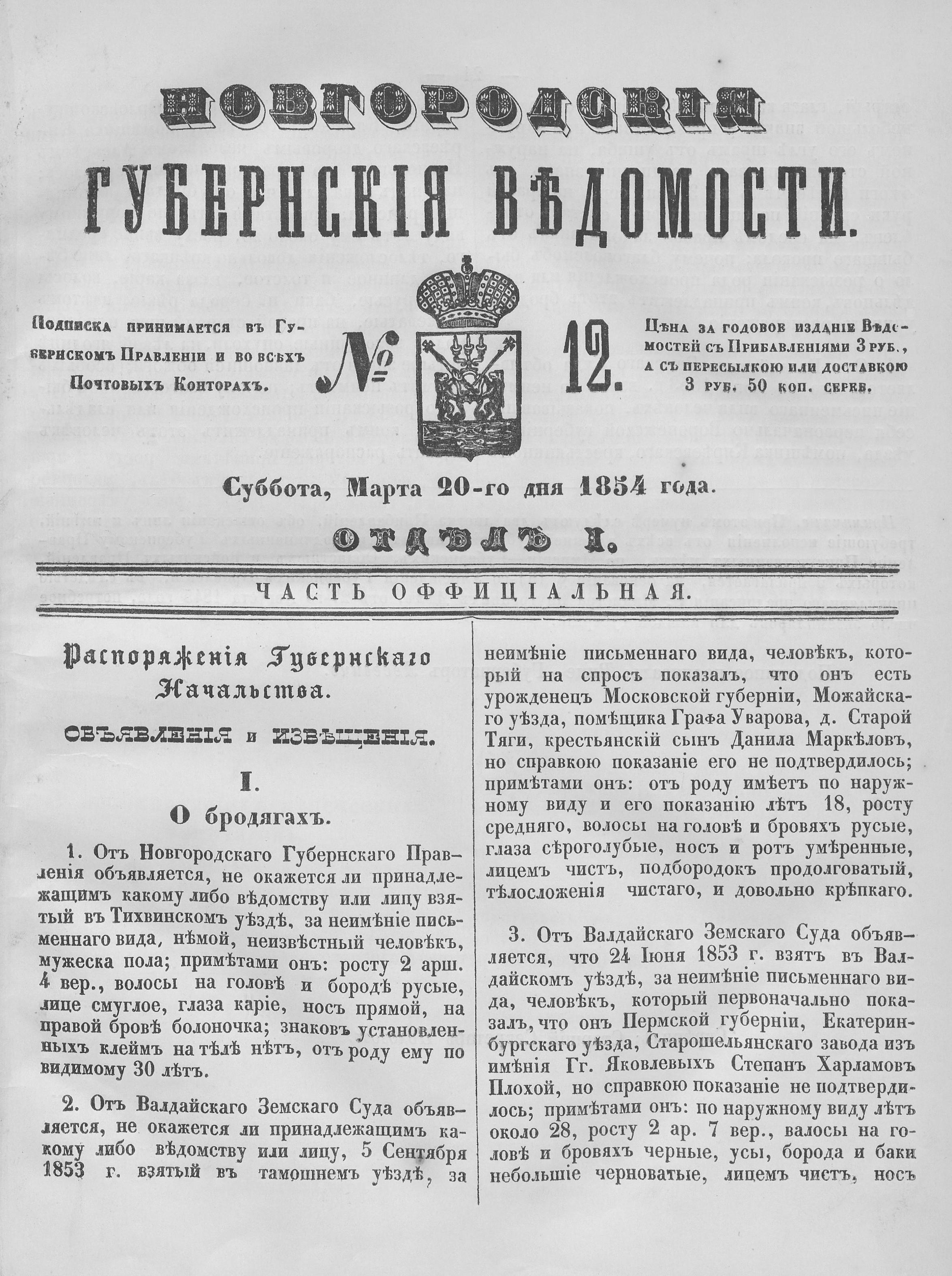 НОВГОРОДСКИЕ ГУБЕРНСКИЕ ВЕДОМОСТИ