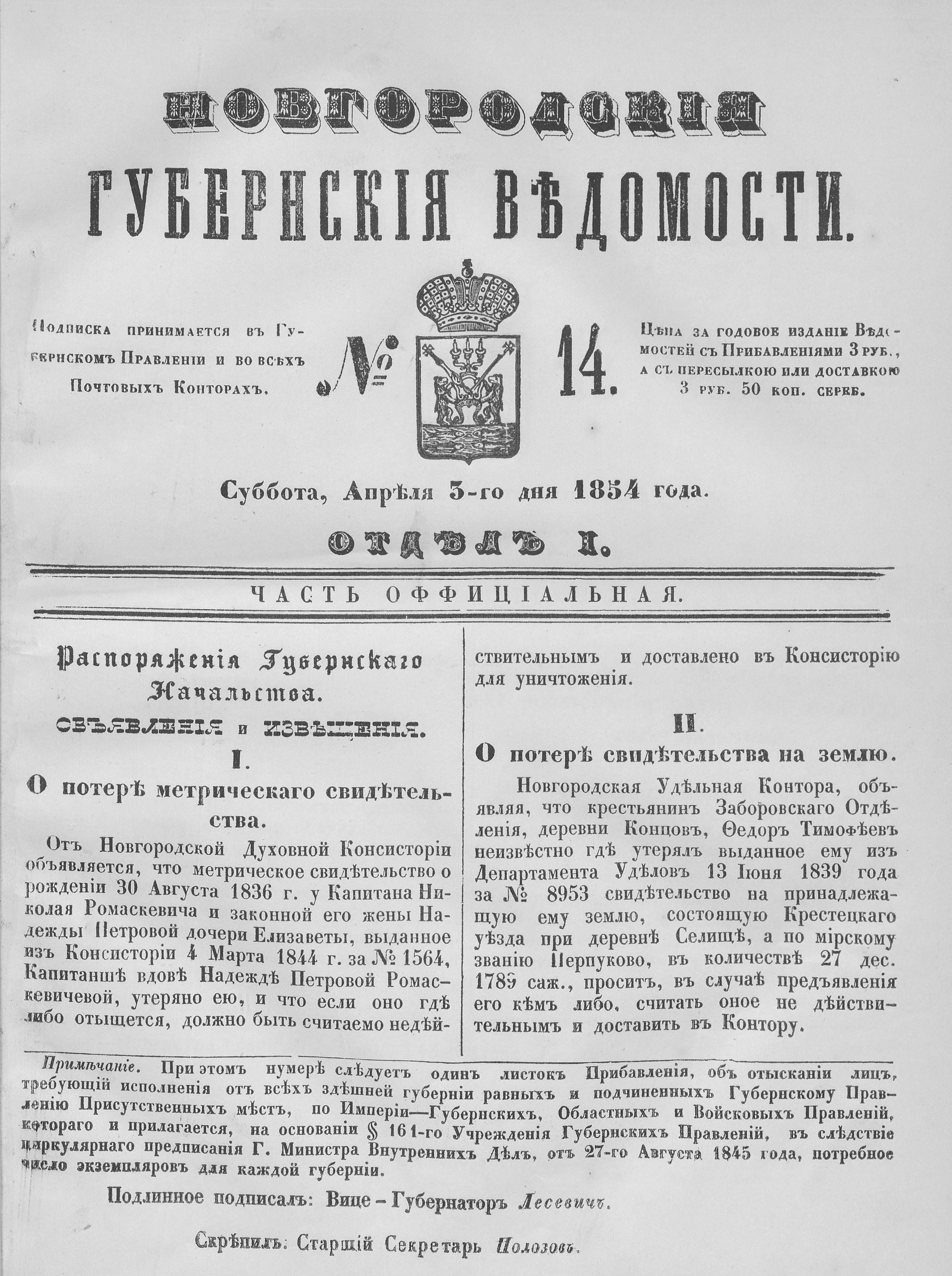 НОВГОРОДСКИЕ ГУБЕРНСКИЕ ВЕДОМОСТИ