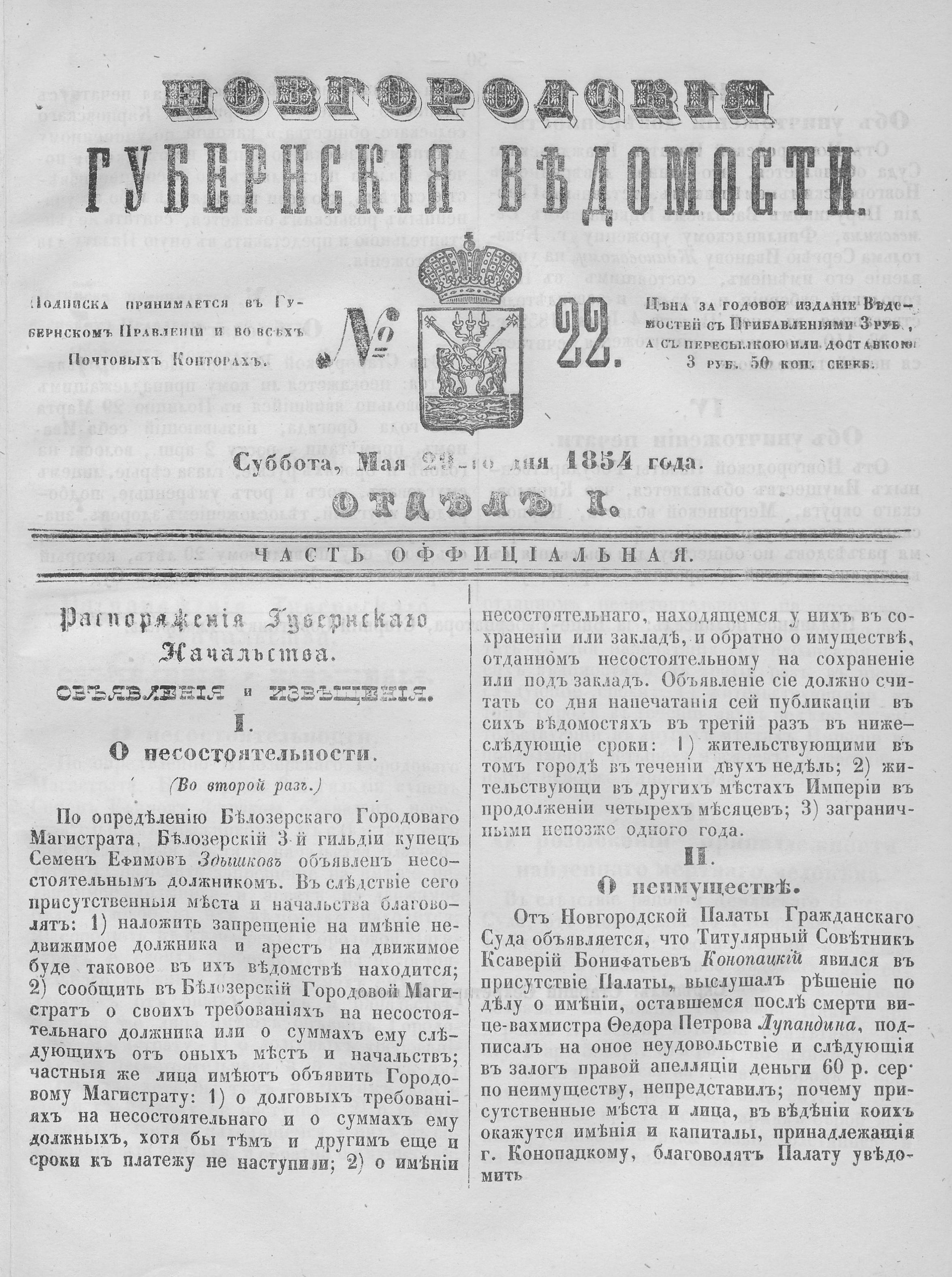 НОВГОРОДСКИЕ ГУБЕРНСКИЕ ВЕДОМОСТИ