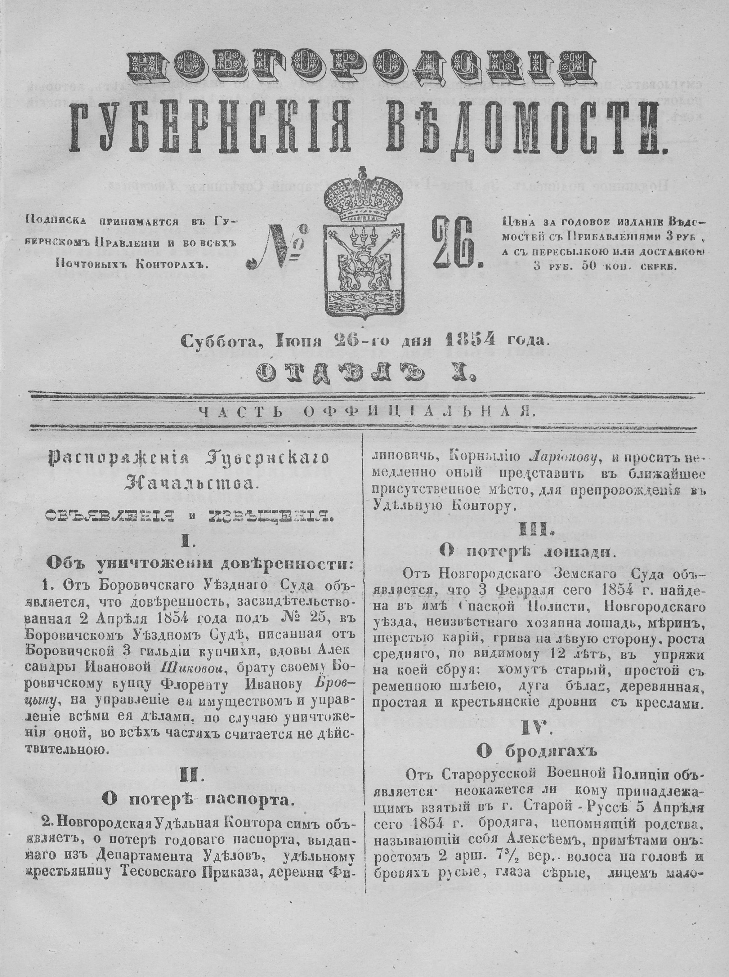 НОВГОРОДСКИЕ ГУБЕРНСКИЕ ВЕДОМОСТИ