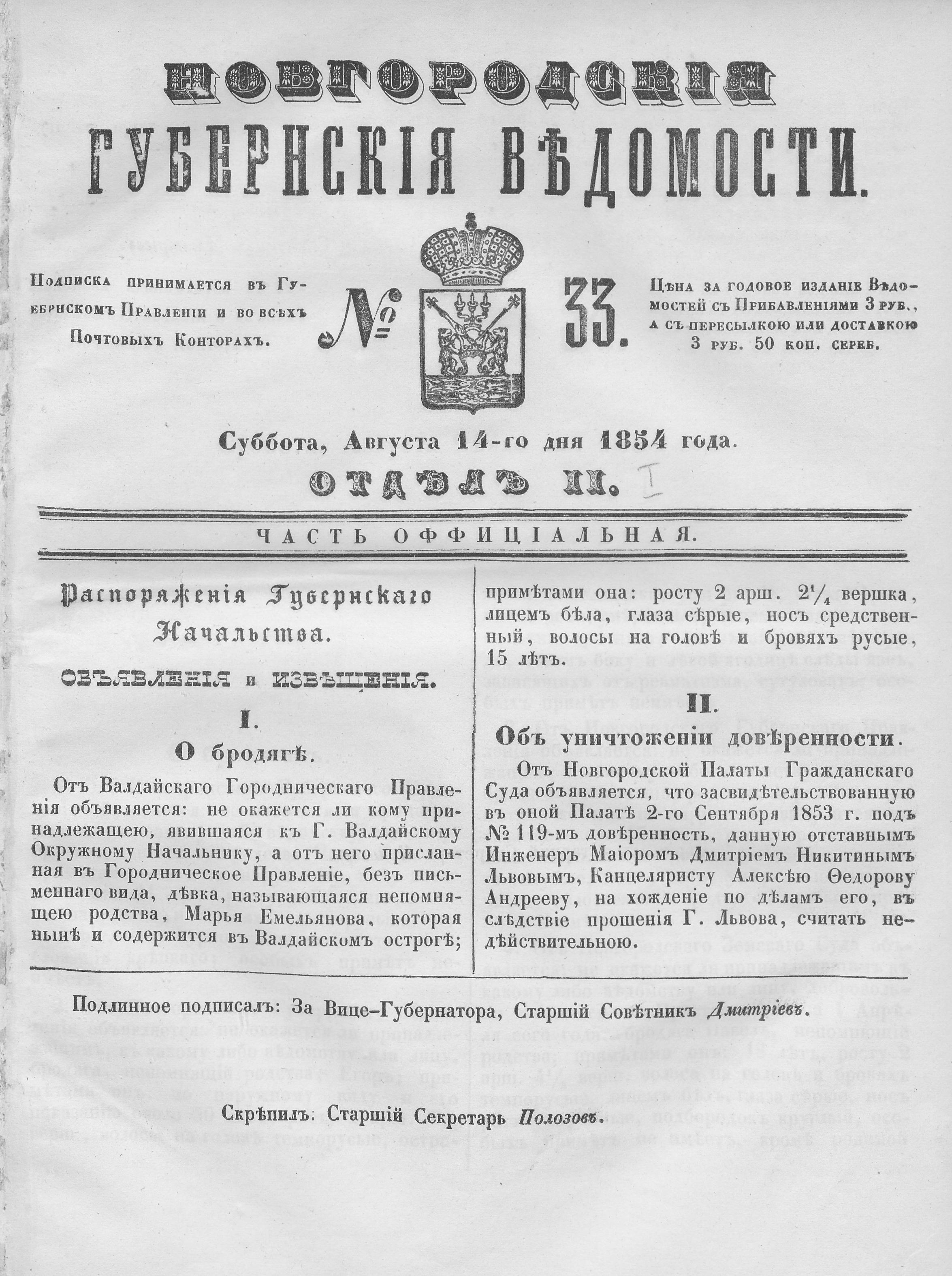 НОВГОРОДСКИЕ ГУБЕРНСКИЕ ВЕДОМОСТИ
