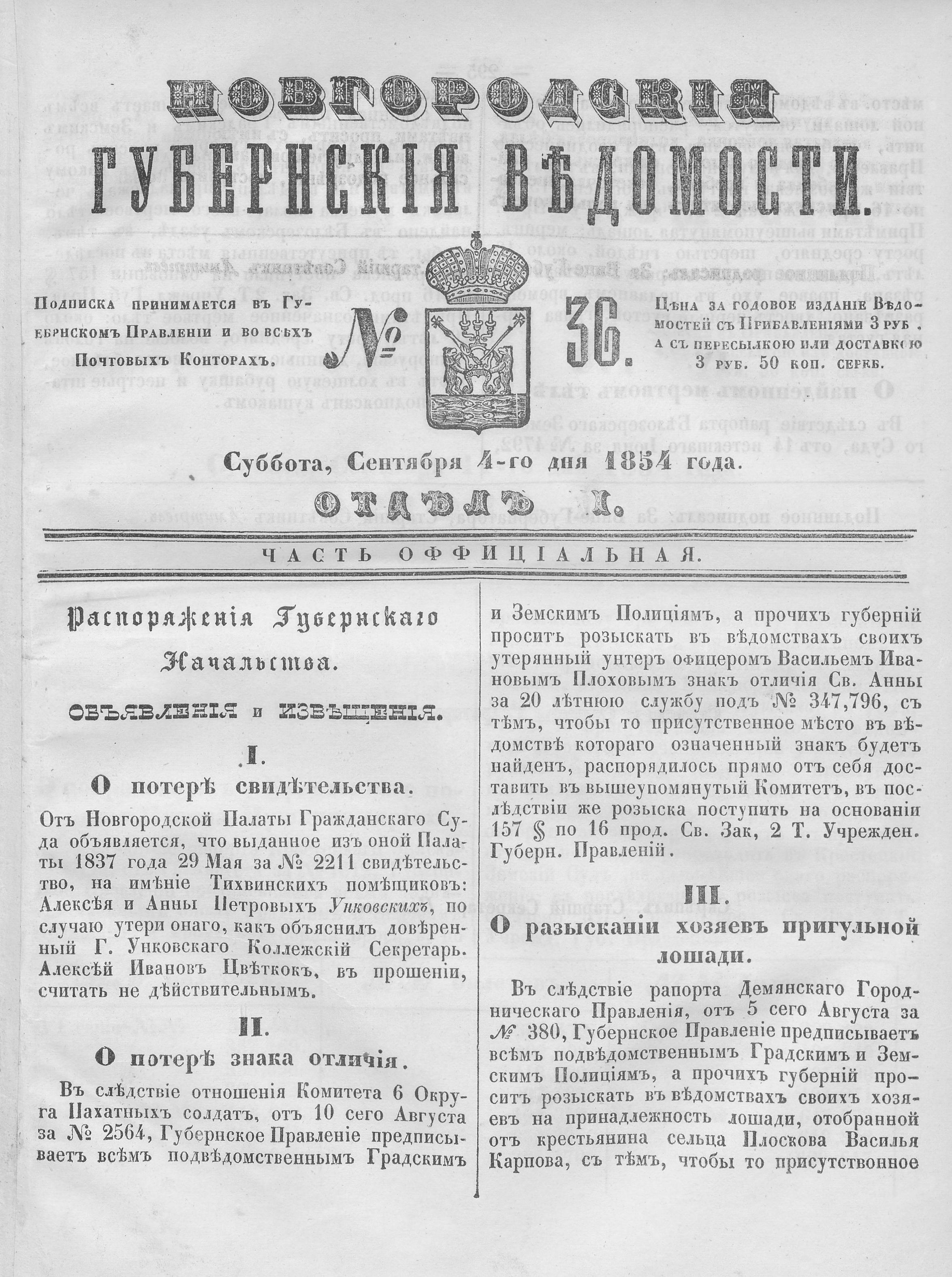 НОВГОРОДСКИЕ ГУБЕРНСКИЕ ВЕДОМОСТИ