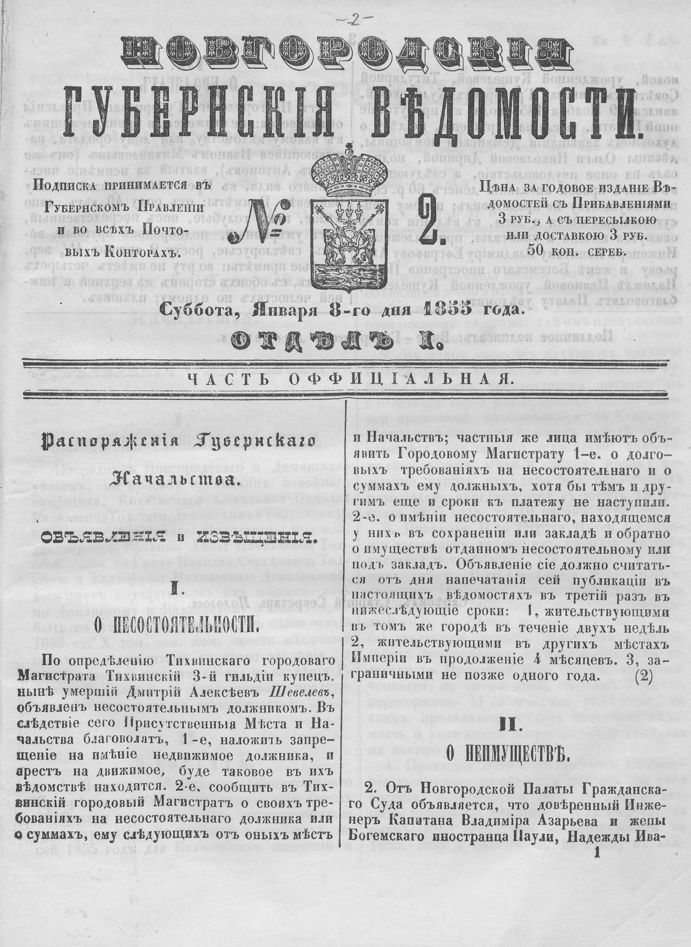 НОВГОРОДСКИЕ ГУБЕРНСКИЕ ВЕДОМОСТИ