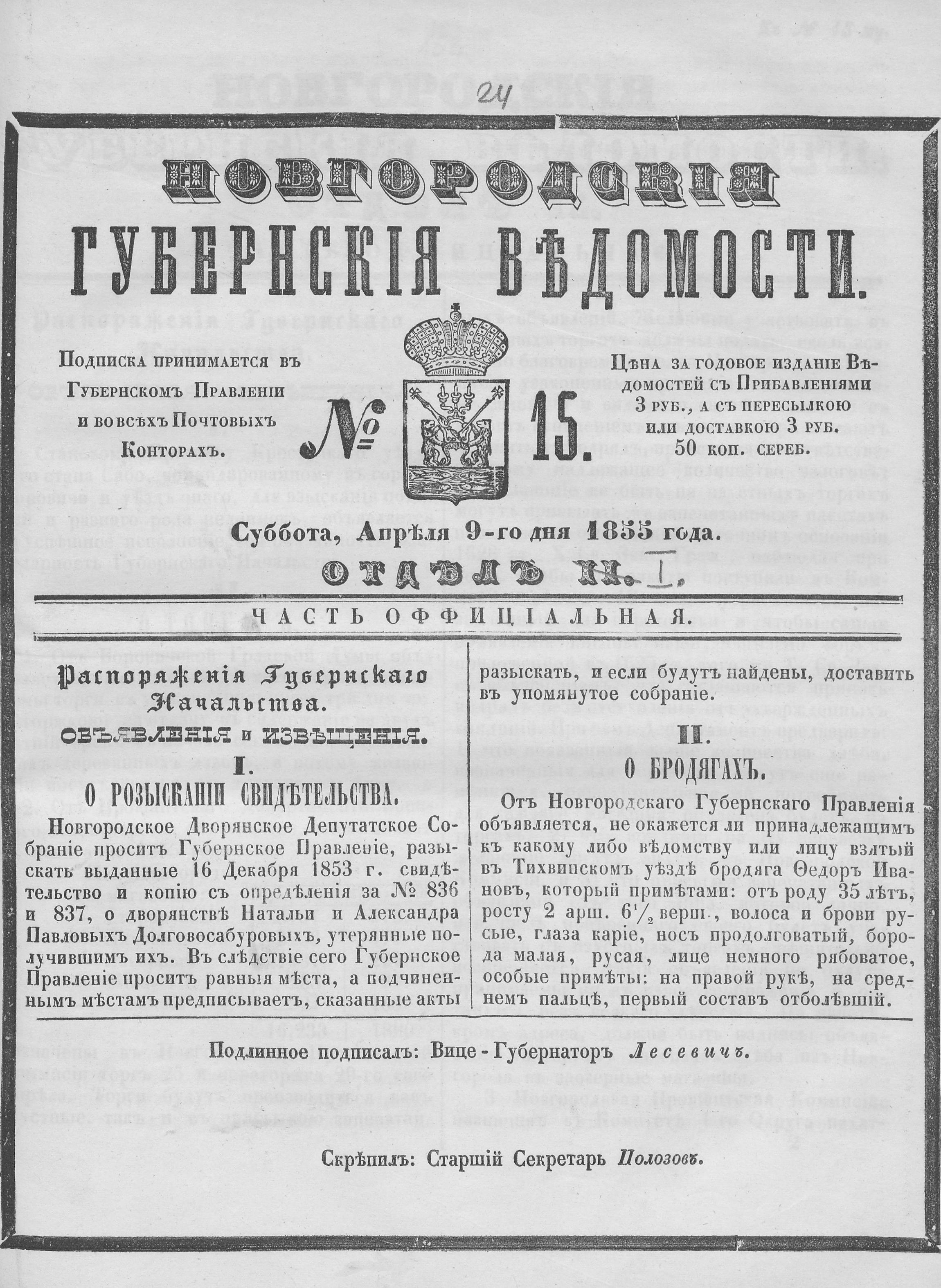 НОВГОРОДСКИЕ ГУБЕРНСКИЕ ВЕДОМОСТИ