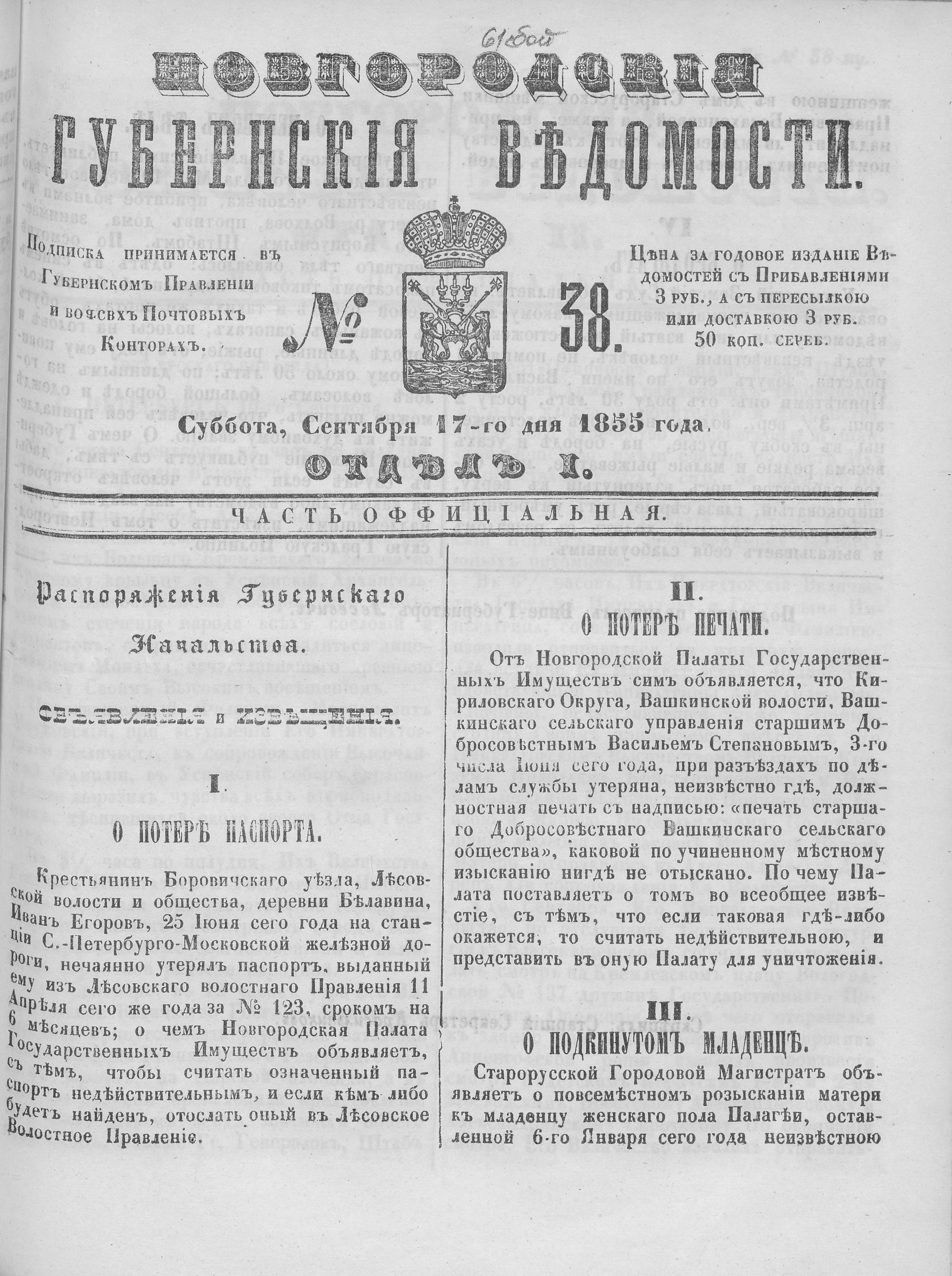 №38, 17 сентября 1855 год