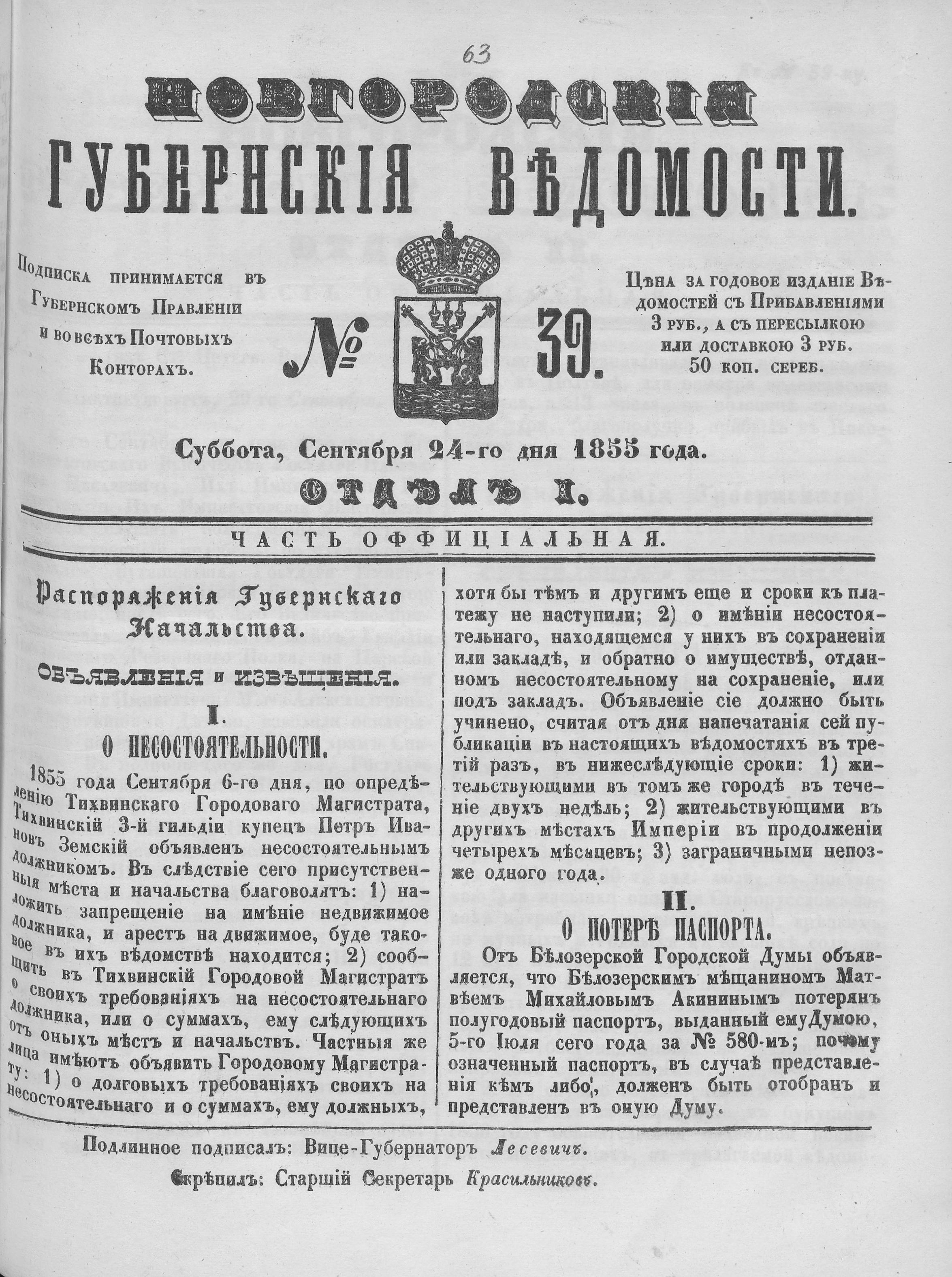 №39, 24 сентября 1855 год