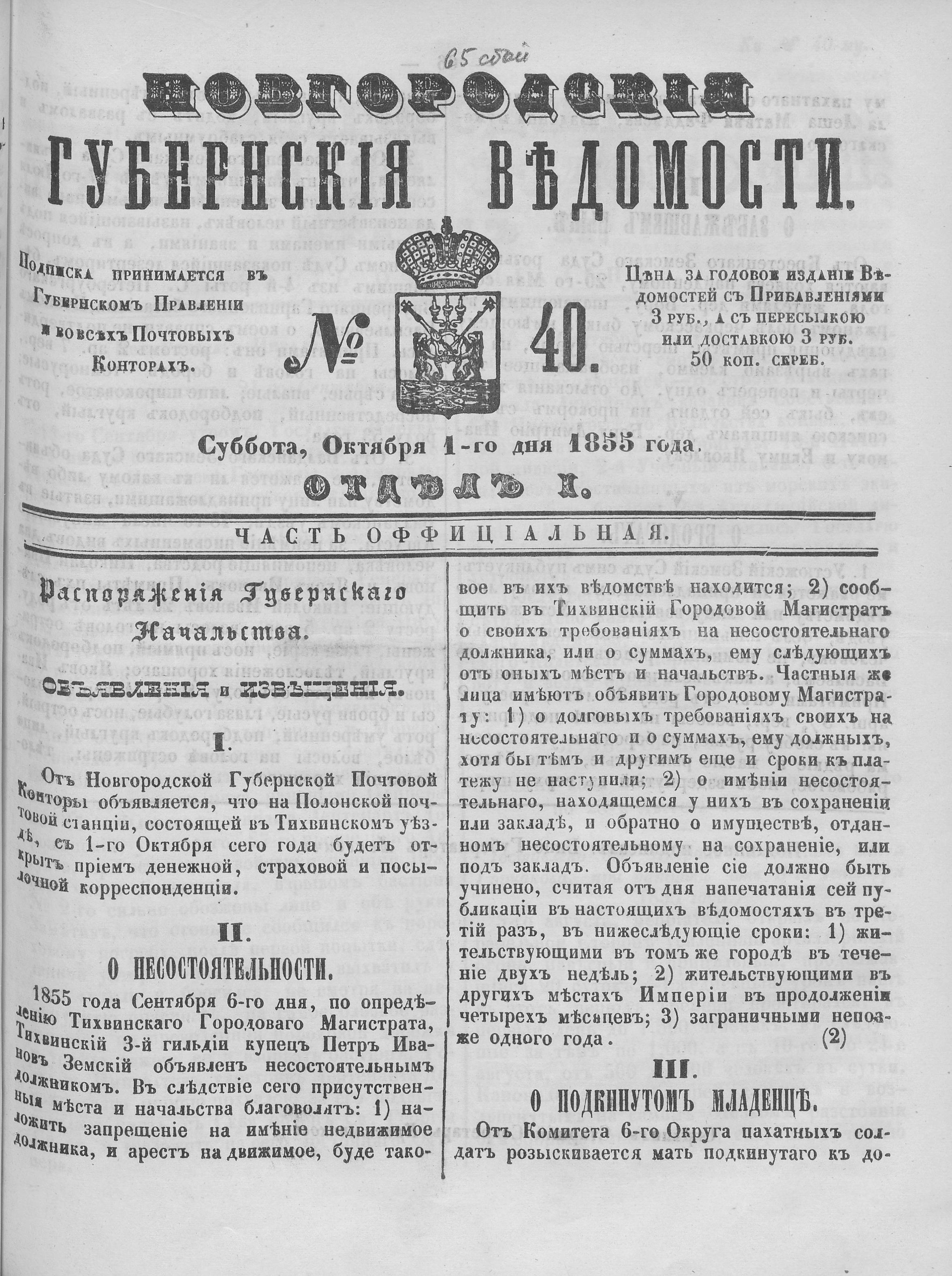 НОВГОРОДСКИЕ ГУБЕРНСКИЕ ВЕДОМОСТИ