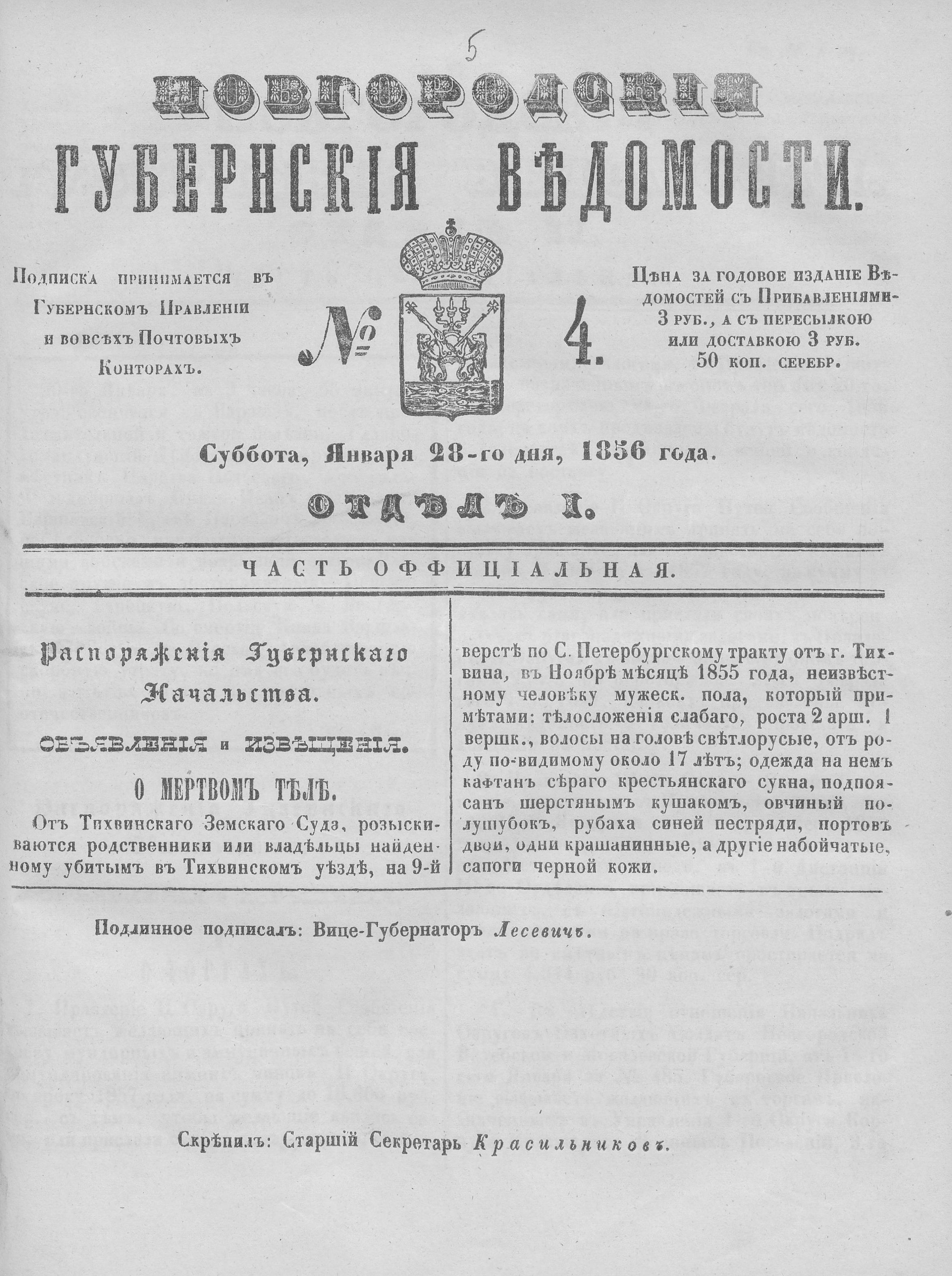 НОВГОРОДСКИЕ ГУБЕРНСКИЕ ВЕДОМОСТИ