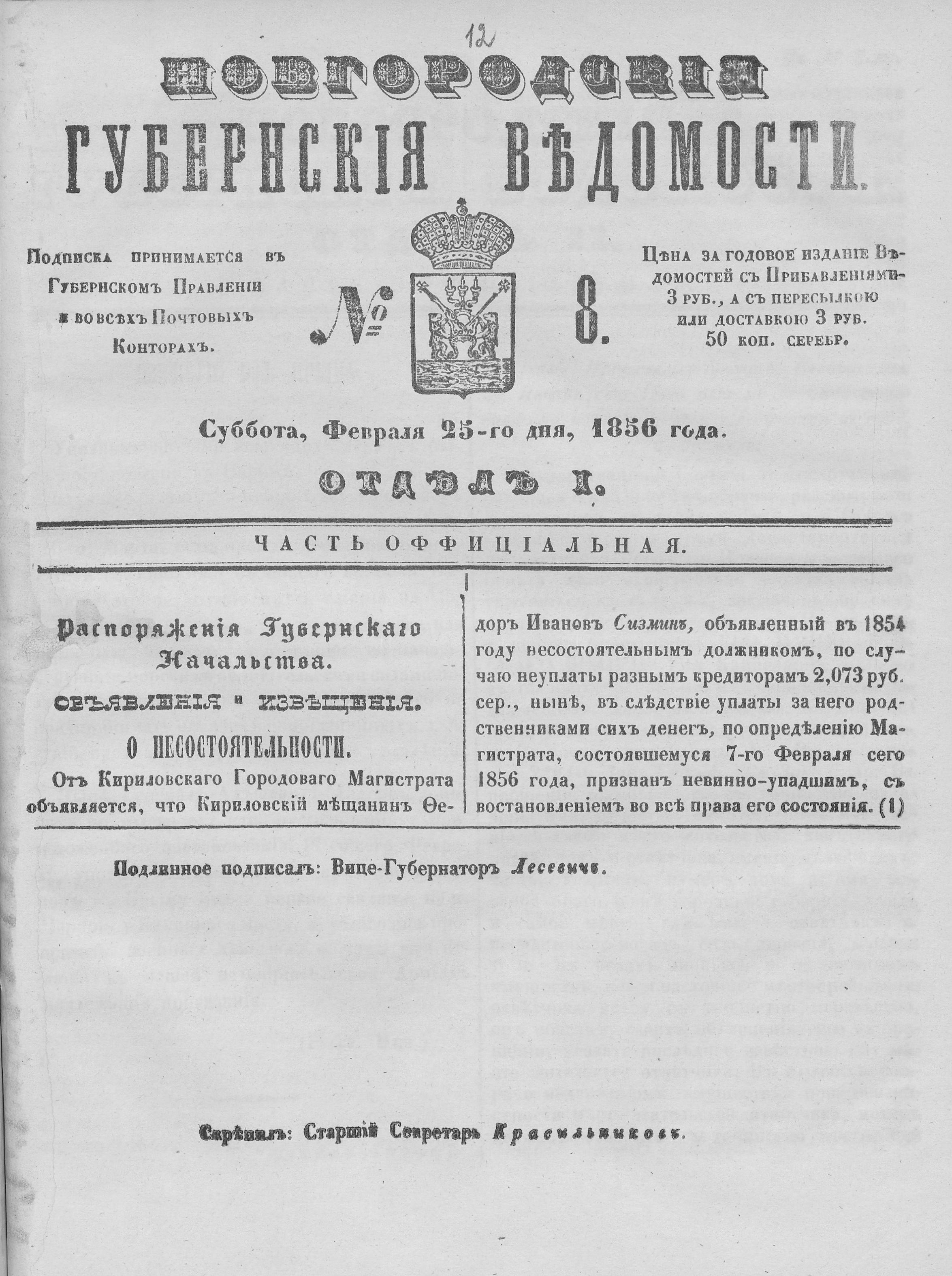 №8, 25 февраля 1856 года.