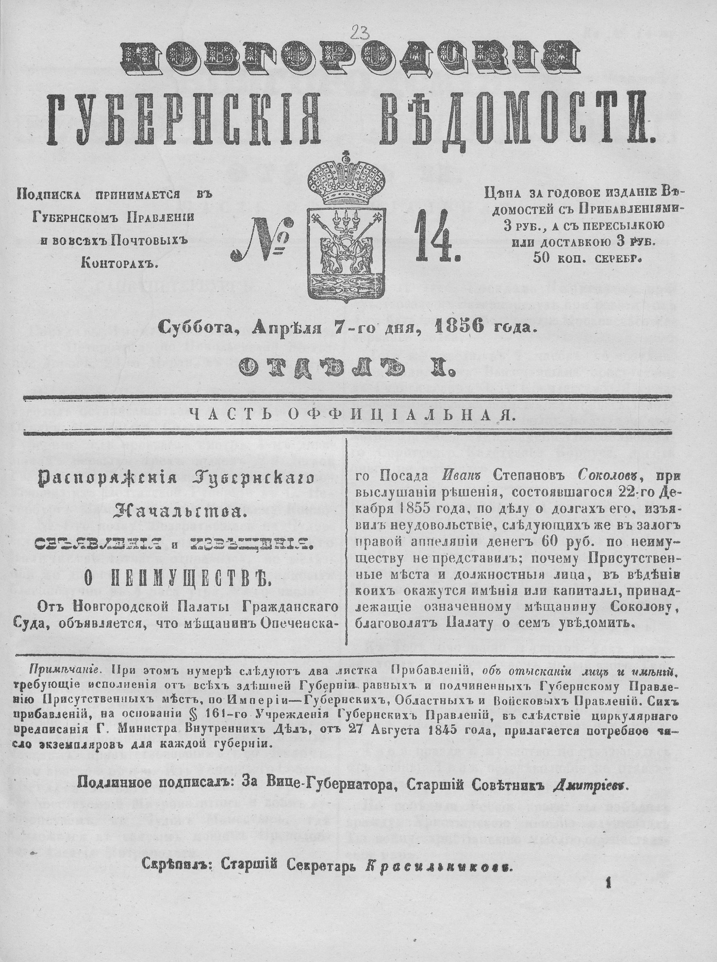 №14, 7 апреля 1856 года.