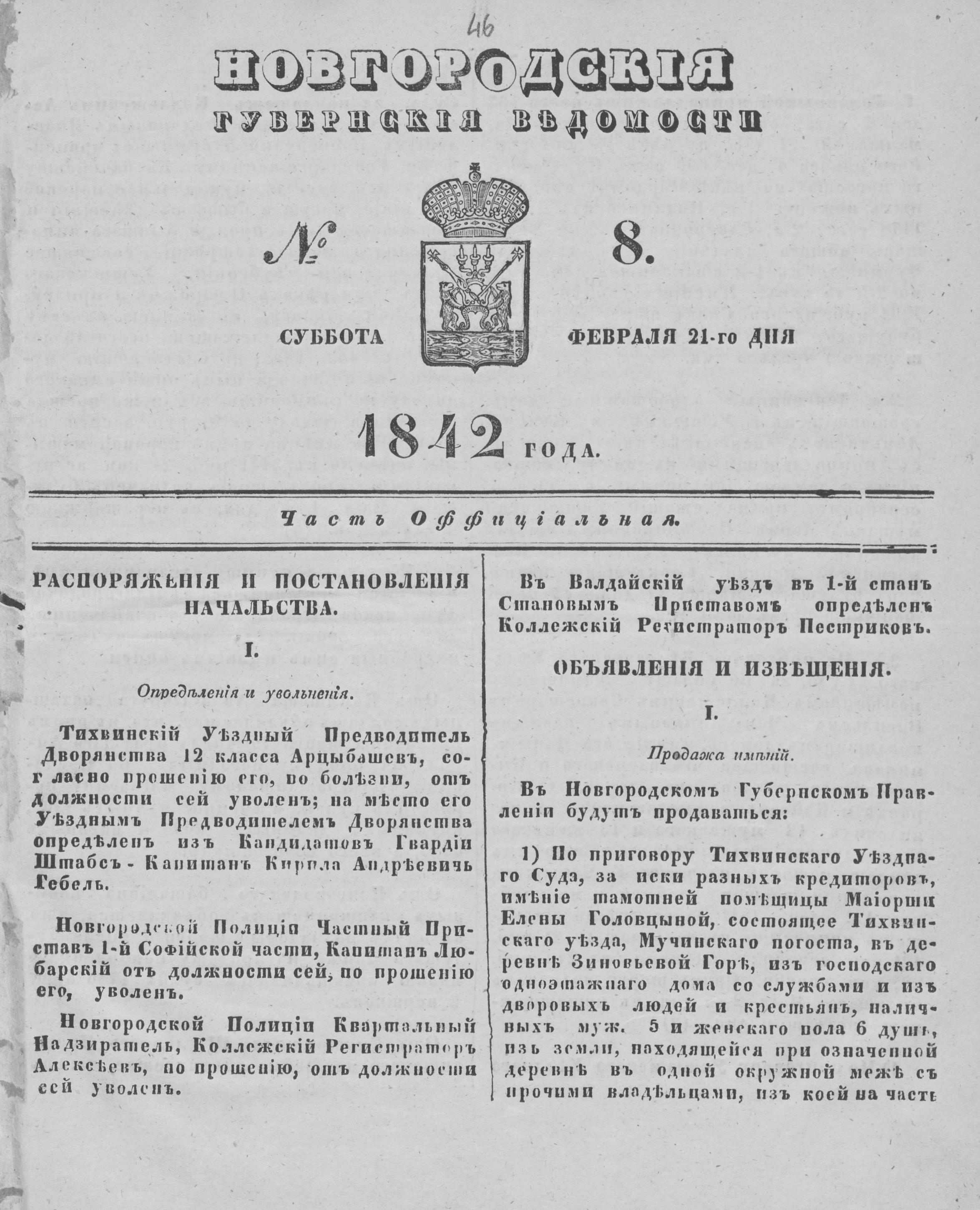 НОВГОРОДСКАЯ ГУБЕРНСКАЯ ВЕДОМОСТЬ