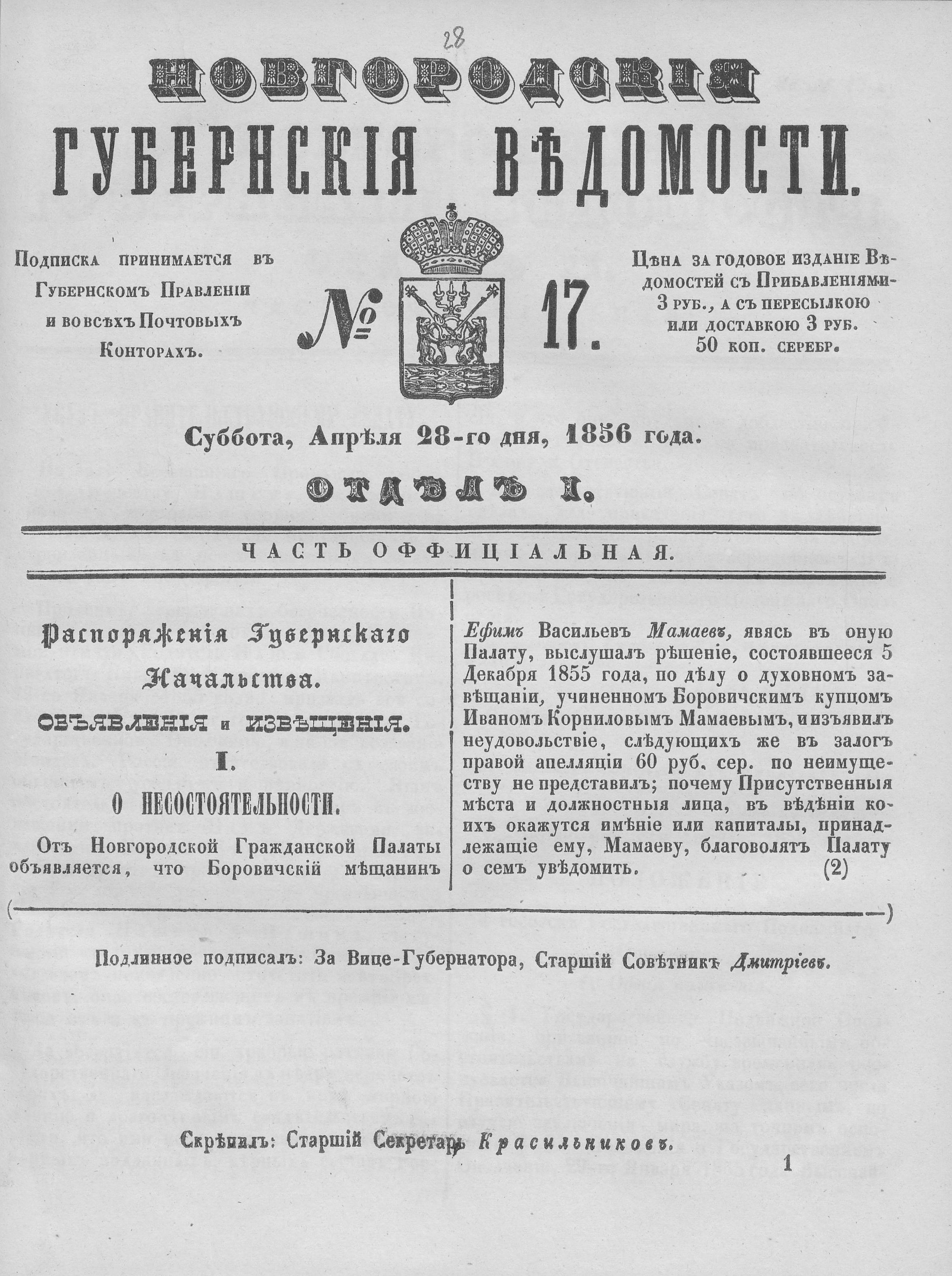 НОВГОРОДСКИЕ ГУБЕРНСКИЕ ВЕДОМОСТИ