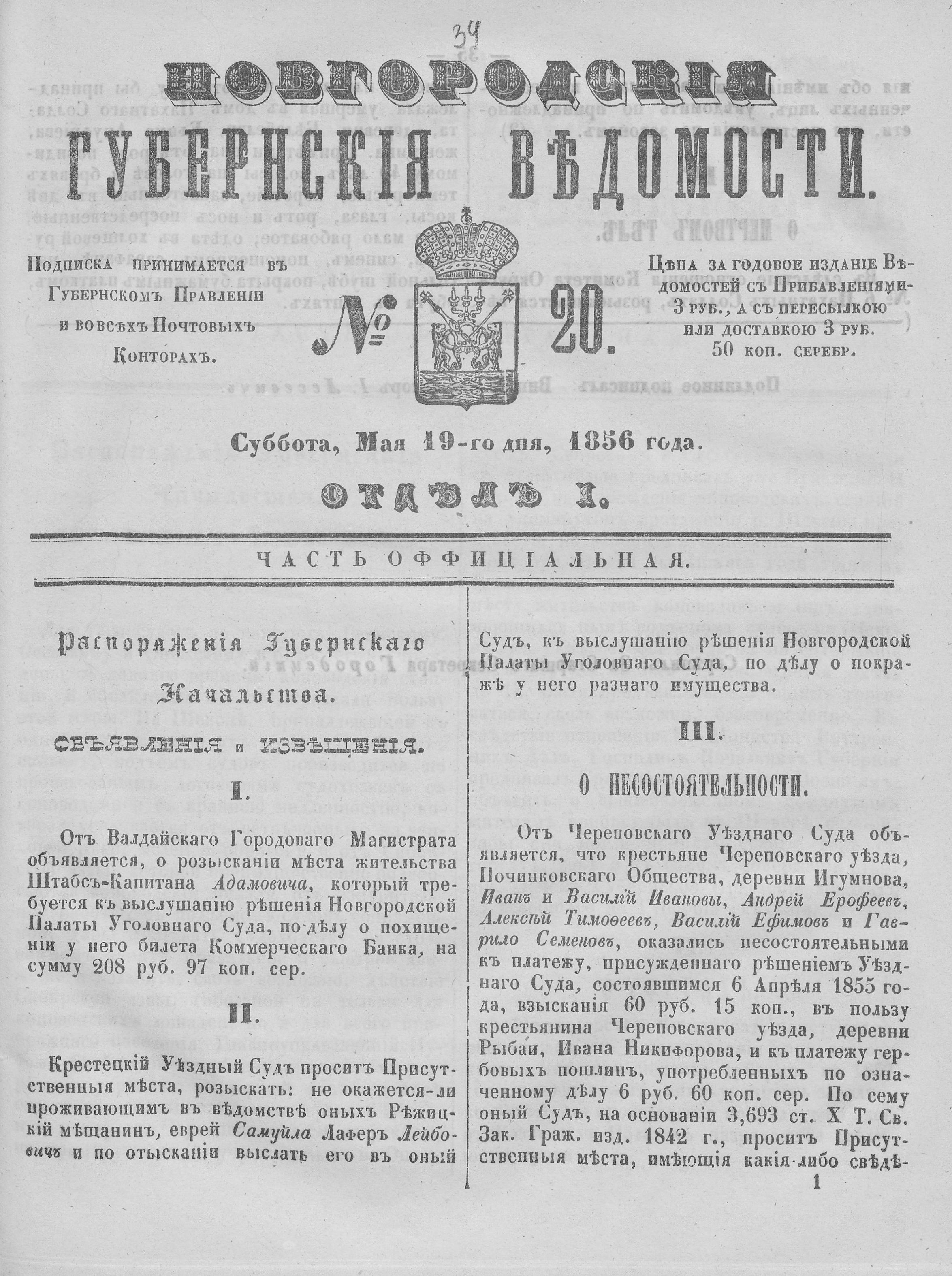 НОВГОРОДСКИЕ ГУБЕРНСКИЕ ВЕДОМОСТИ