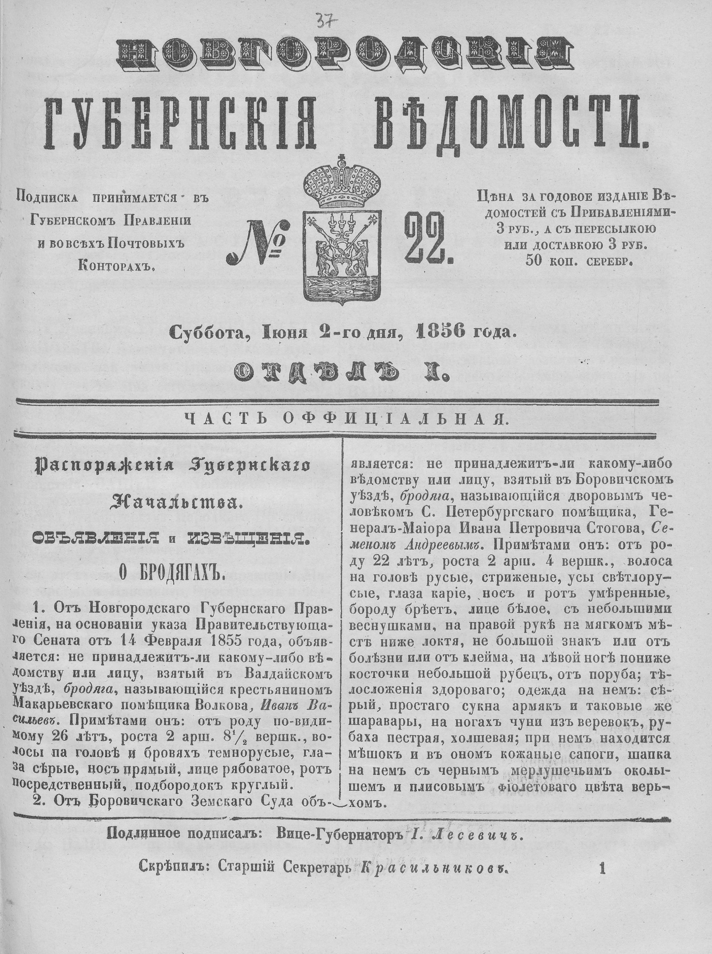 НОВГОРОДСКИЕ ГУБЕРНСКИЕ ВЕДОМОСТИ