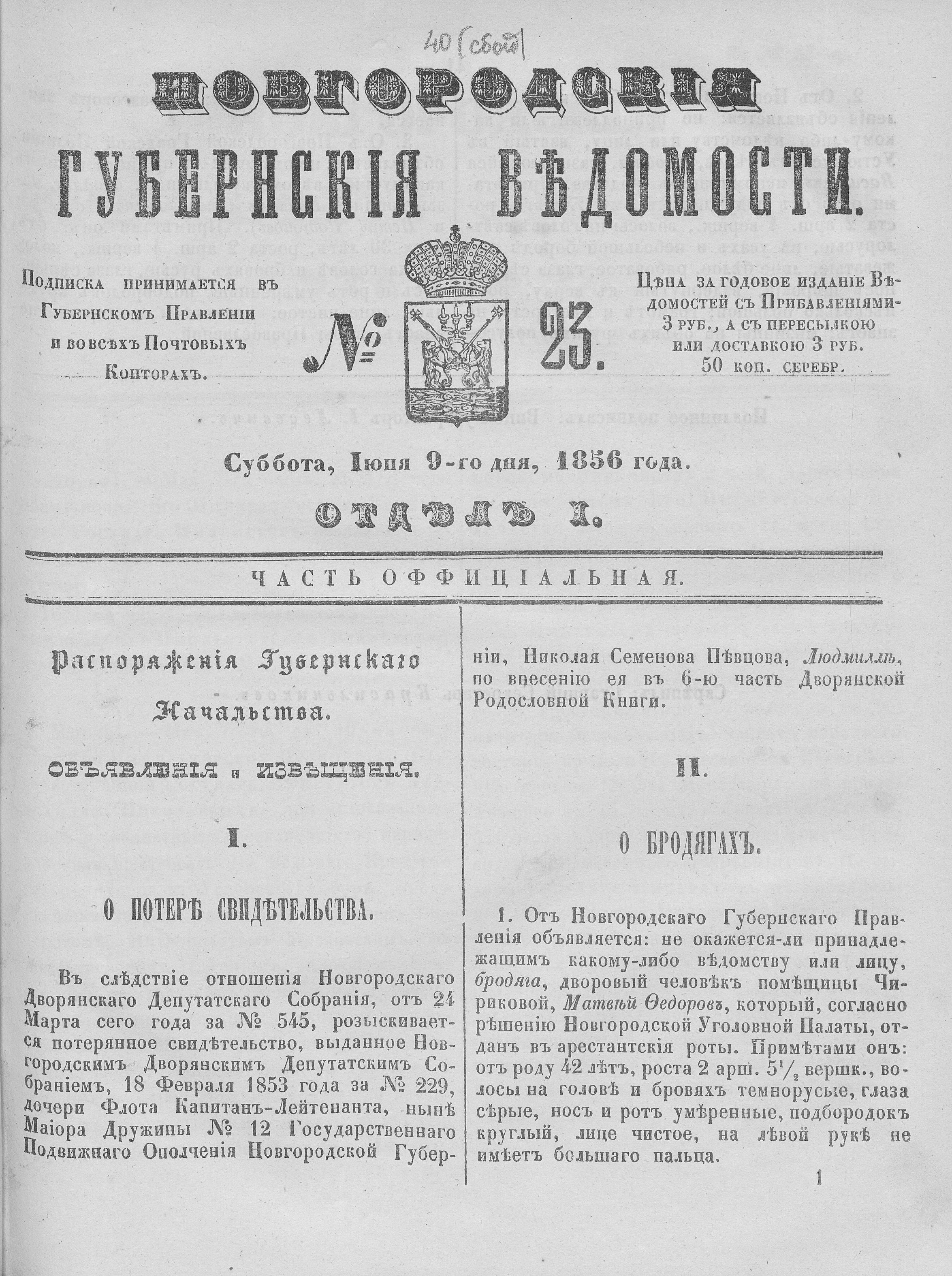 №23, 9 июня 1856 года.