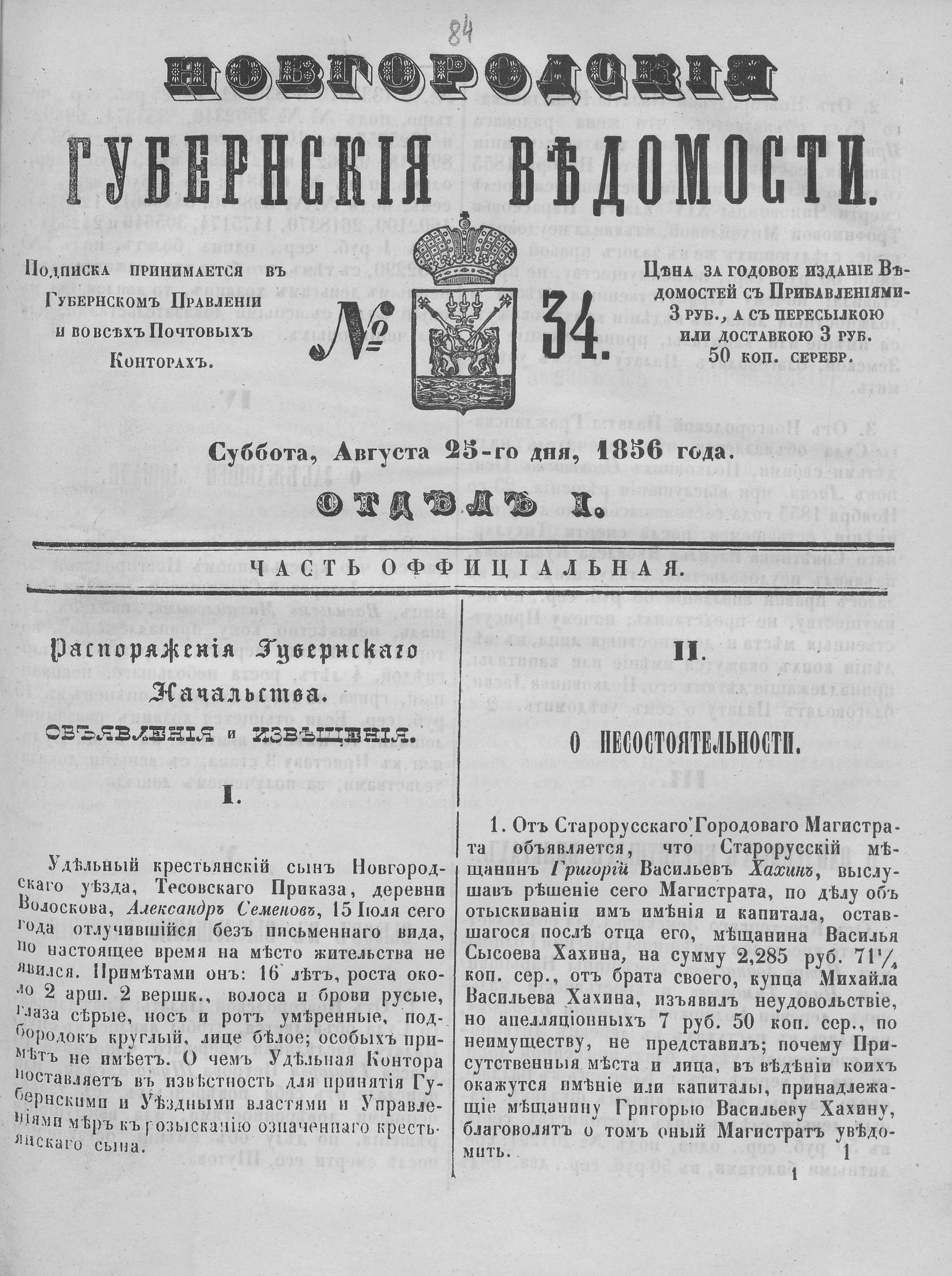 НОВГОРОДСКИЕ ГУБЕРНСКИЕ ВЕДОМОСТИ