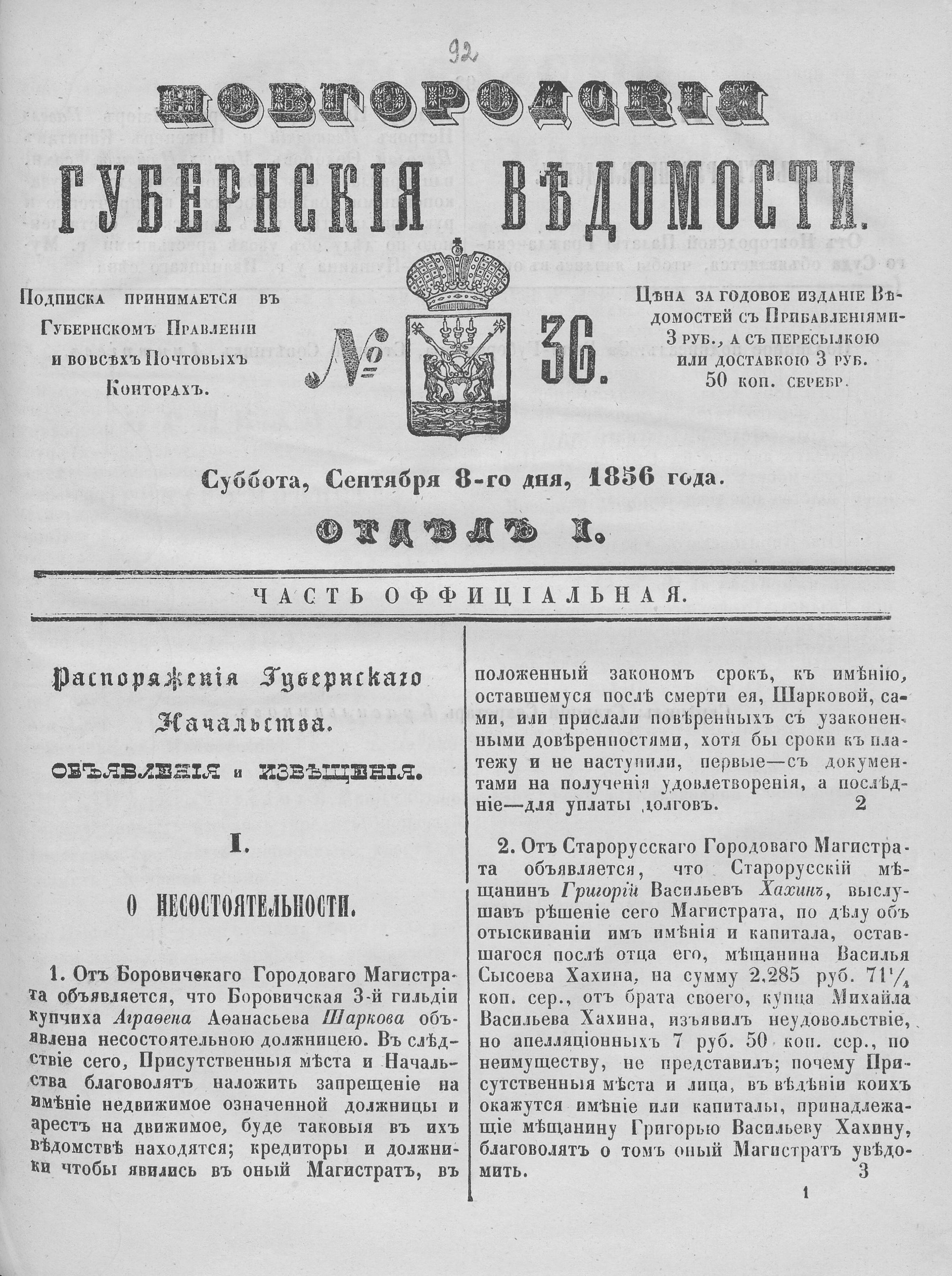 НОВГОРОДСКИЕ ГУБЕРНСКИЕ ВЕДОМОСТИ