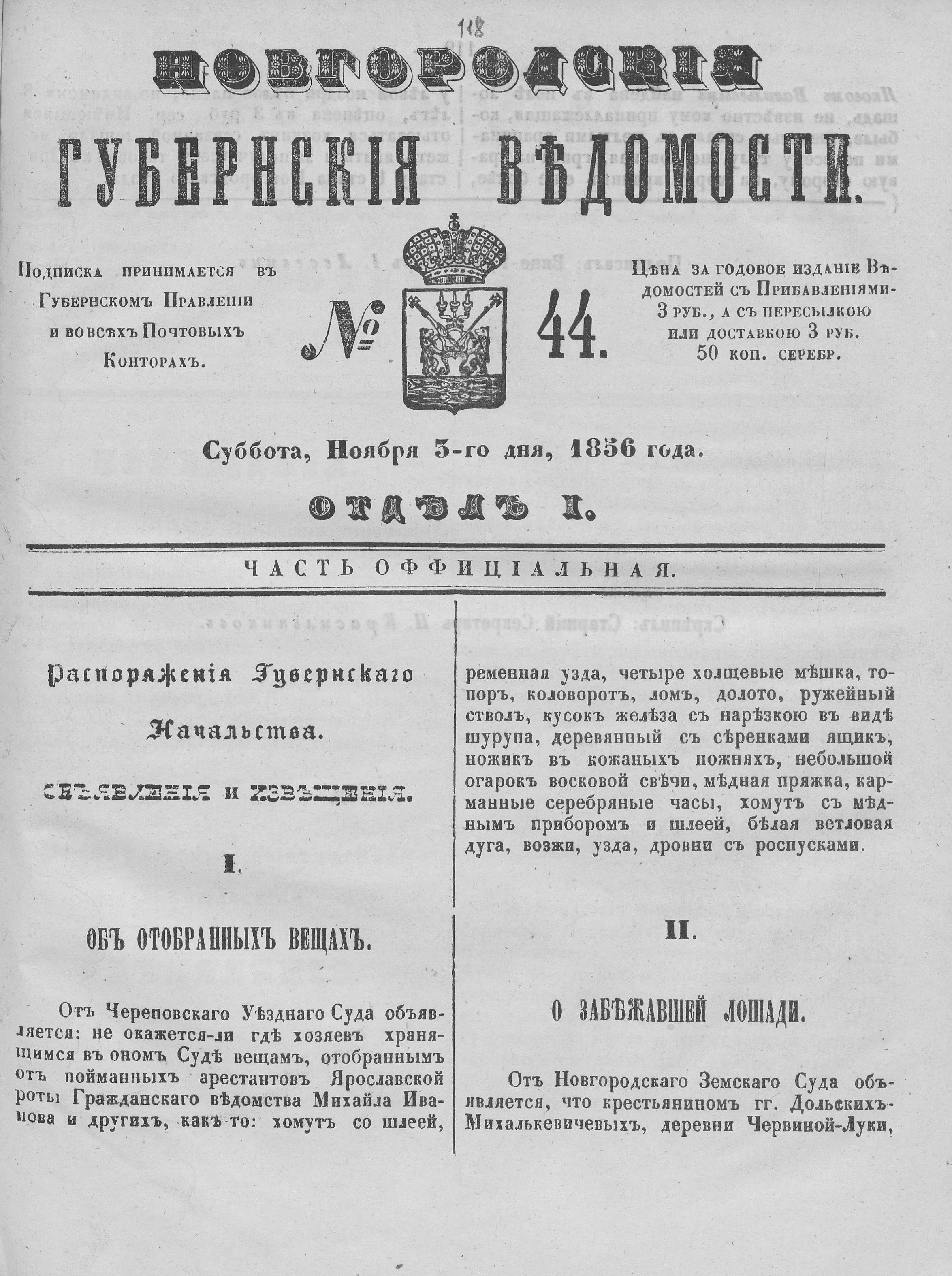 НОВГОРОДСКИЕ ГУБЕРНСКИЕ ВЕДОМОСТИ