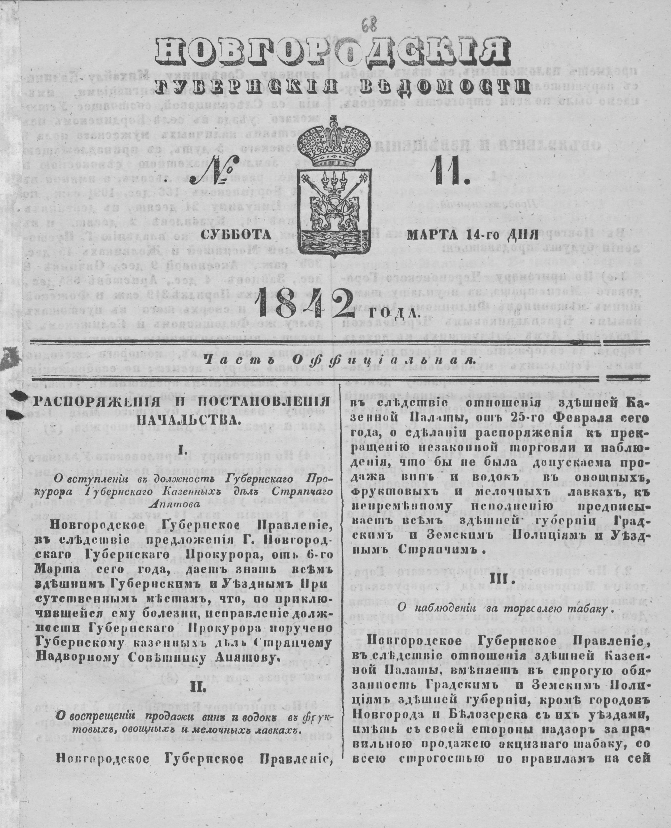 НОВГОРОДСКИЕ ГУБЕРНСКИЕ ВЕДОМОСТИ №11