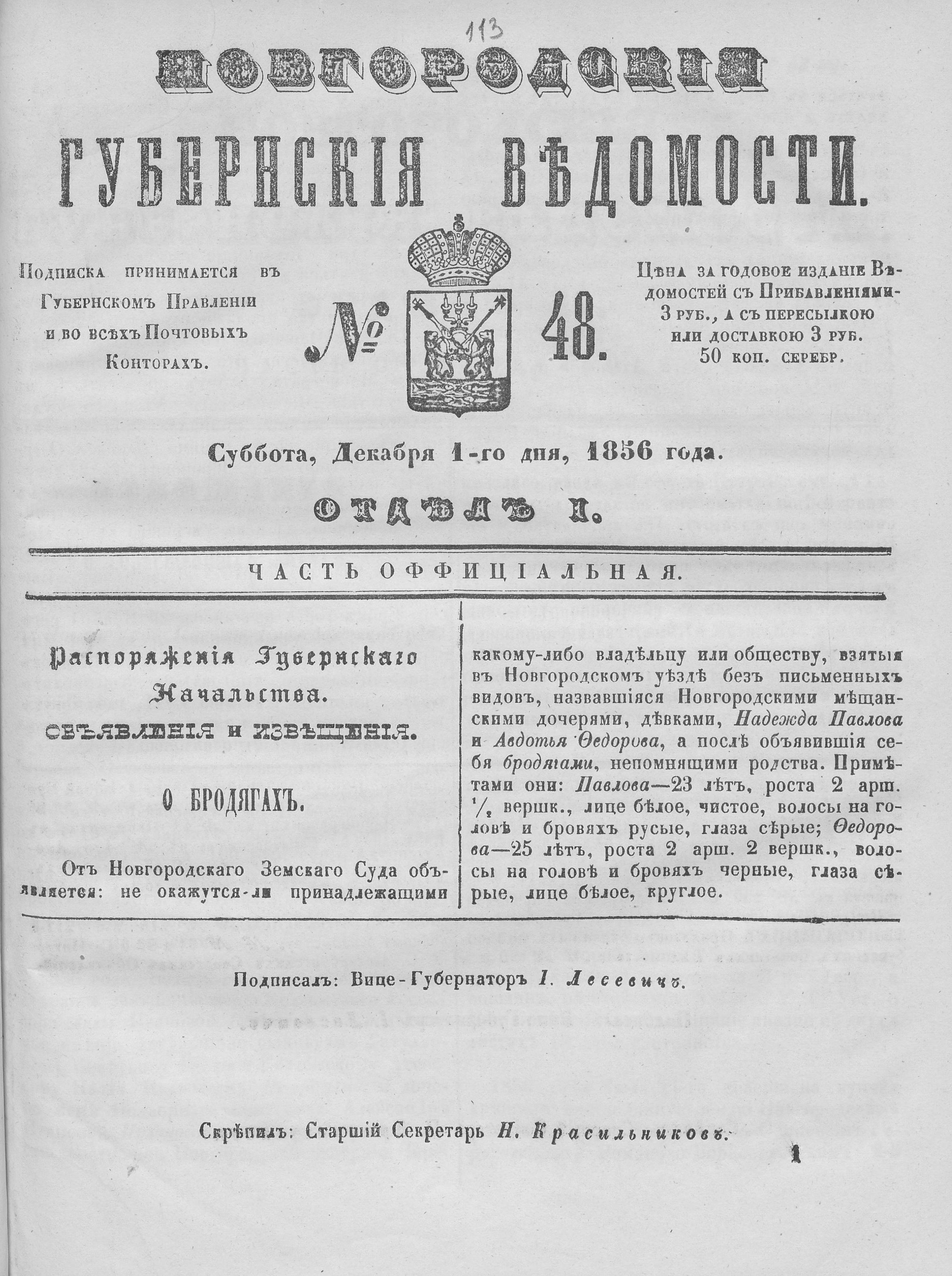 №48, 1 декабря 1856 года.