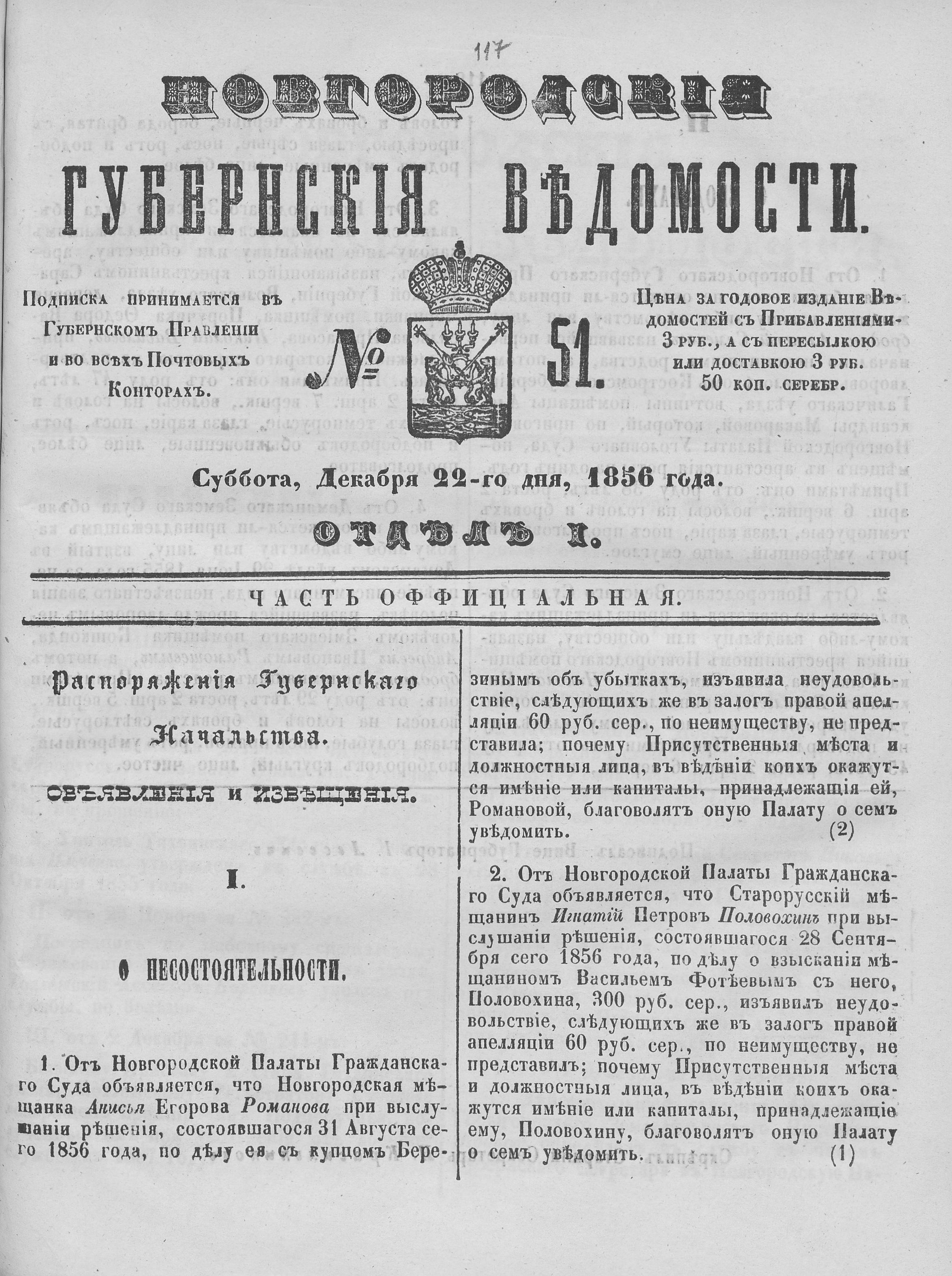 НОВГОРОДСКИЕ ГУБЕРНСКИЕ ВЕДОМОСТИ