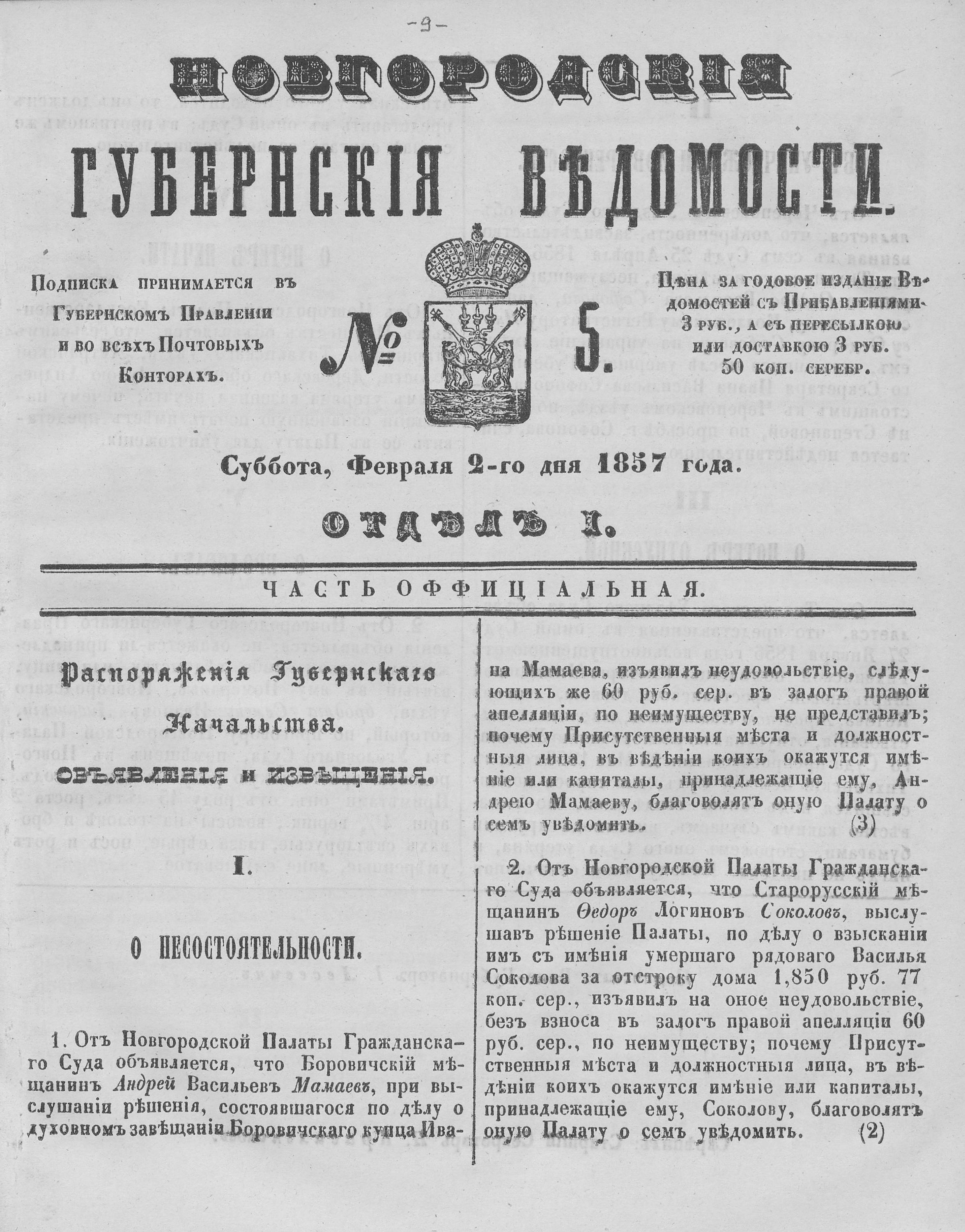 №5, 2 февраля 1857 год