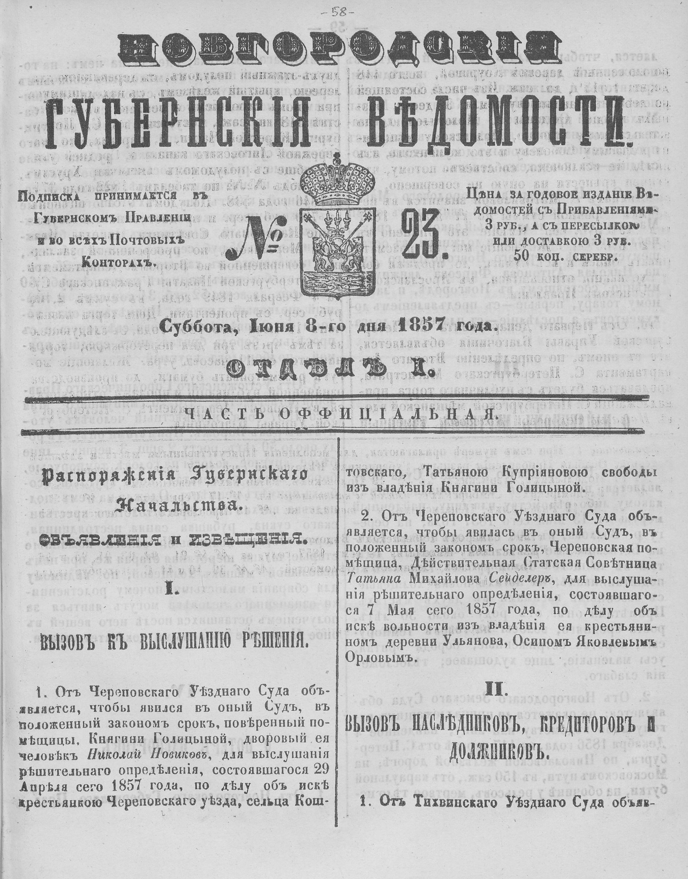 НОВГОРОДСКИЕ ГУБЕРНСКИЕ ВЕДОМОСТИ
