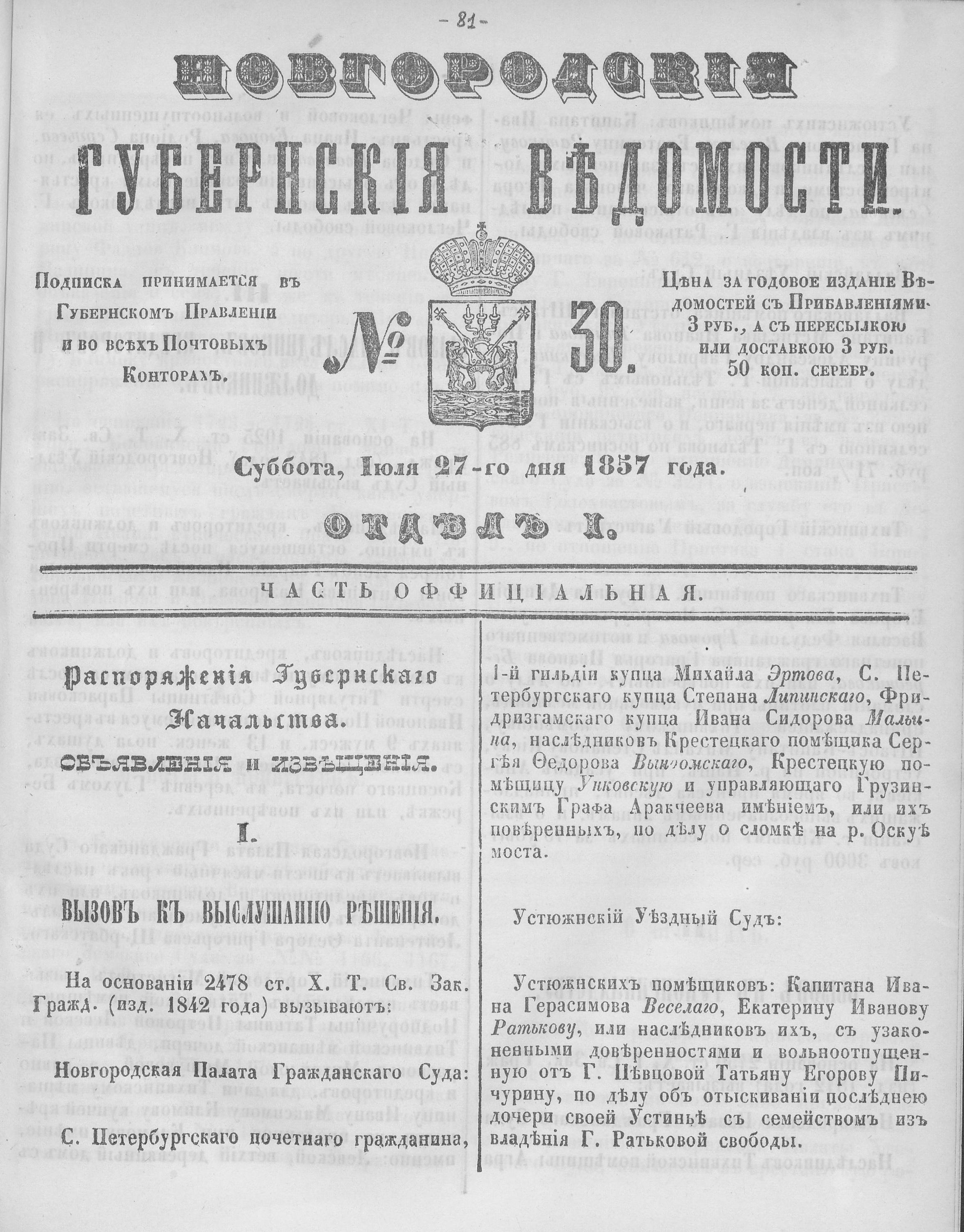 НОВГОРОДСКИЕ ГУБЕРНСКИЕ ВЕДОМОСТИ