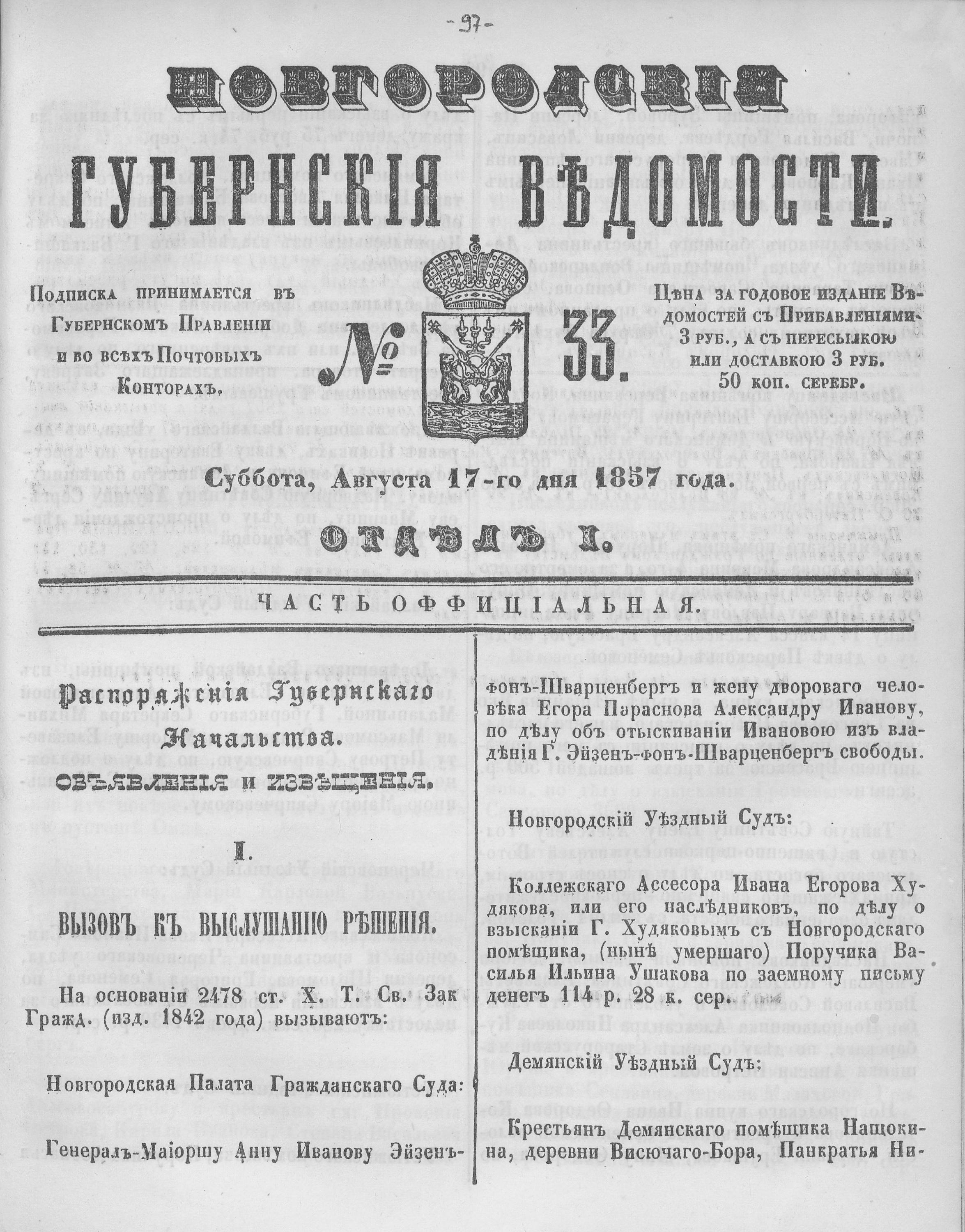 НОВГОРОДСКИЕ ГУБЕРНСКИЕ ВЕДОМОСТИ
