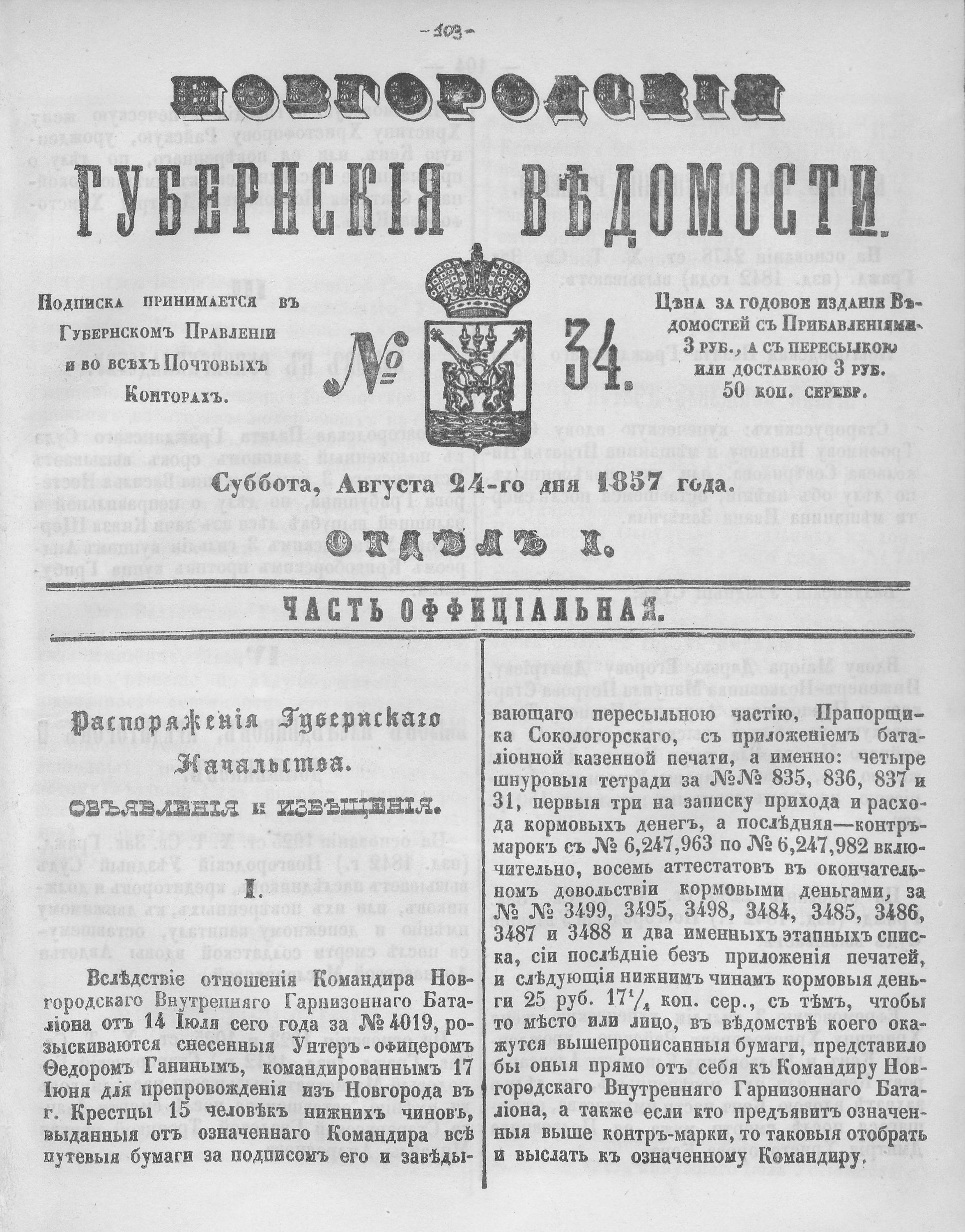 НОВГОРОДСКИЕ ГУБЕРНСКИЕ ВЕДОМОСТИ
